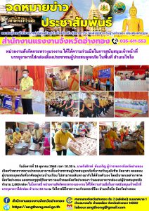 หน่วยงานสังกัดกระทรวงแรงงาน ได้ให้ความร่วมมือในการสนับสนุนเจ้าหน้าที่ บรรจุอาหารใส่กล่องลี้ยงประชาชนผู้ประสบอุทกภัย ในพื้นที่ อำเภอไชโย