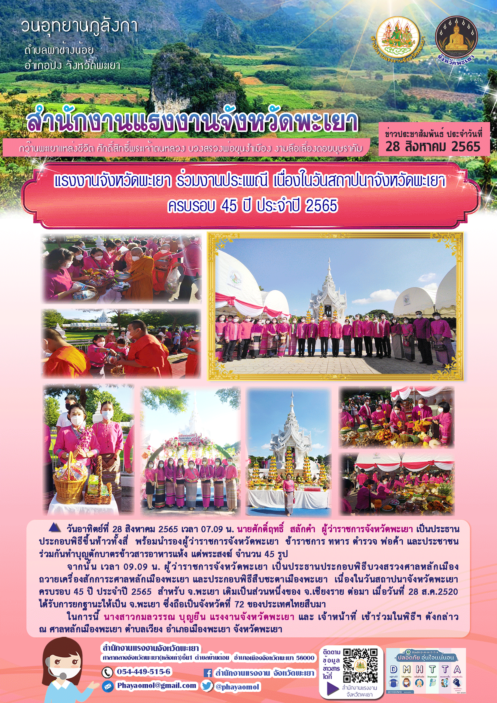แรงงานจังหวัดพะเยา ร่วมงานประเพณี เนื่องในวันสถาปนาจังหวัดพะเยา ครบรอบ 45 ปี ประจำปี 2565