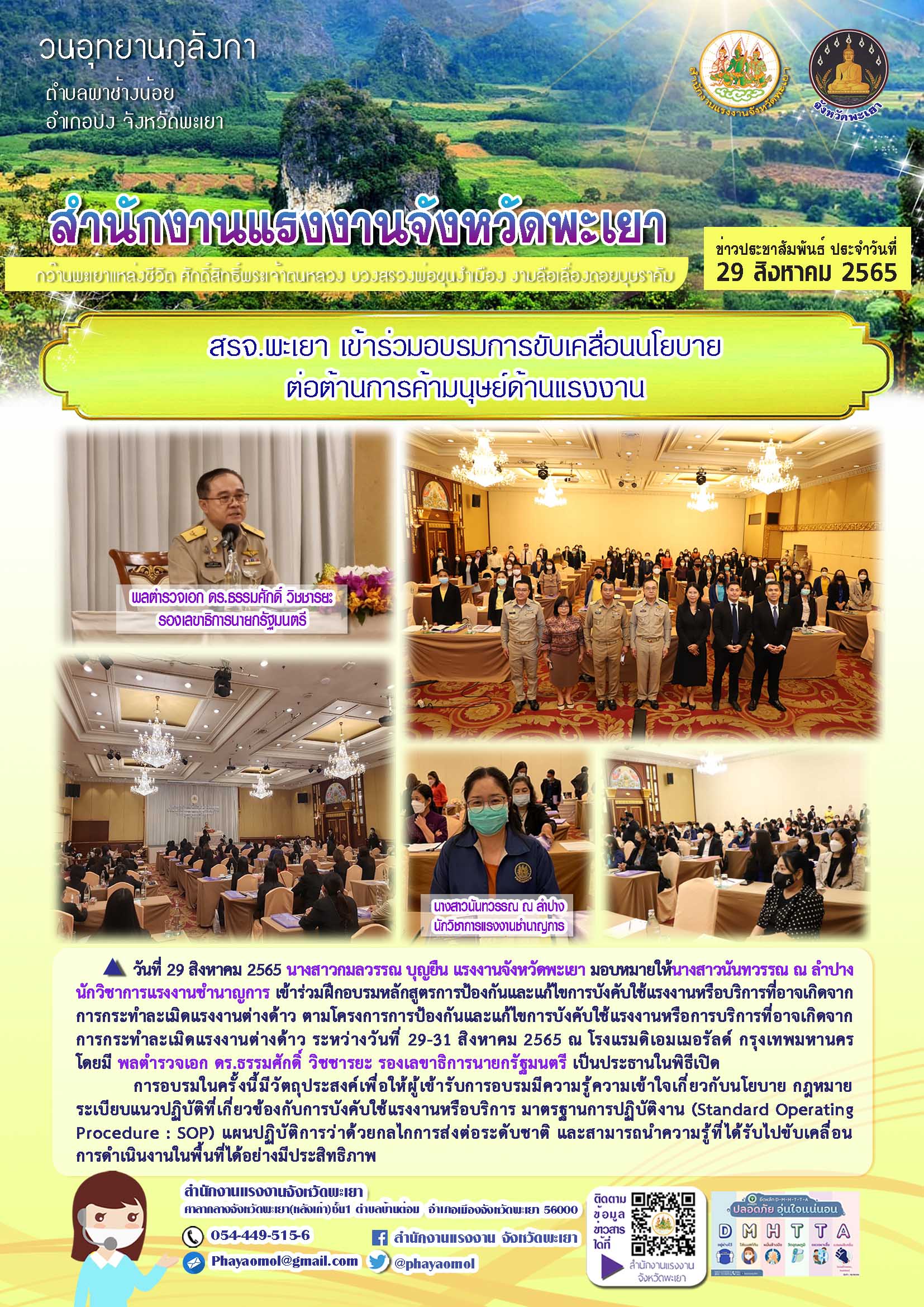 สรจ.พะเยา เข้าร่วมอบรมการขับเคลื่อนนโยบายต่อต้านการค้ามนุษย์ด้านแรงงาน