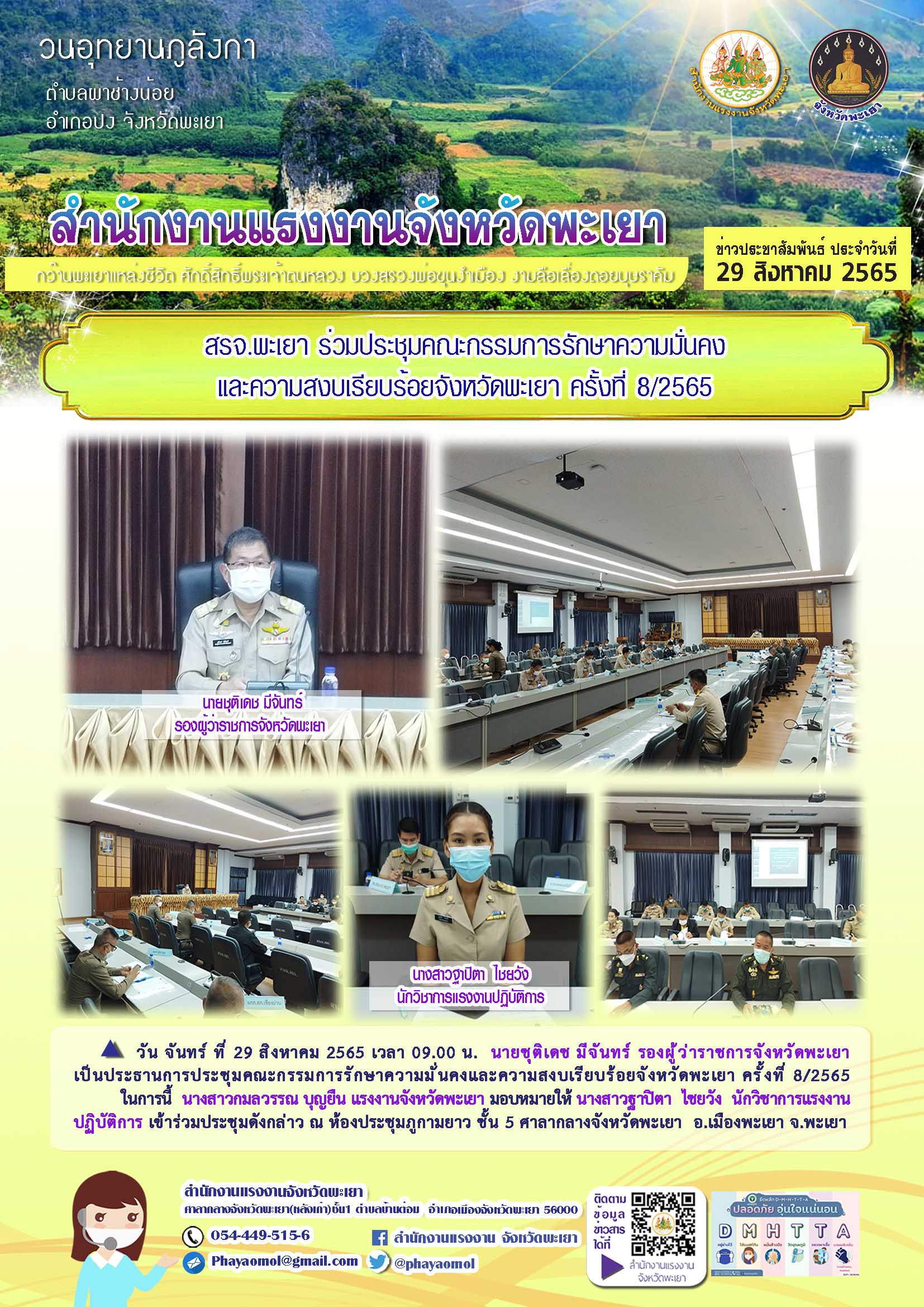 สรจ.พะเยา ร่วมประชุมคณะกรรมการรักษาความมั่นคงและความสงบเรียบร้อยจังหวัดพะเยา ครั้งที่ 8/2565