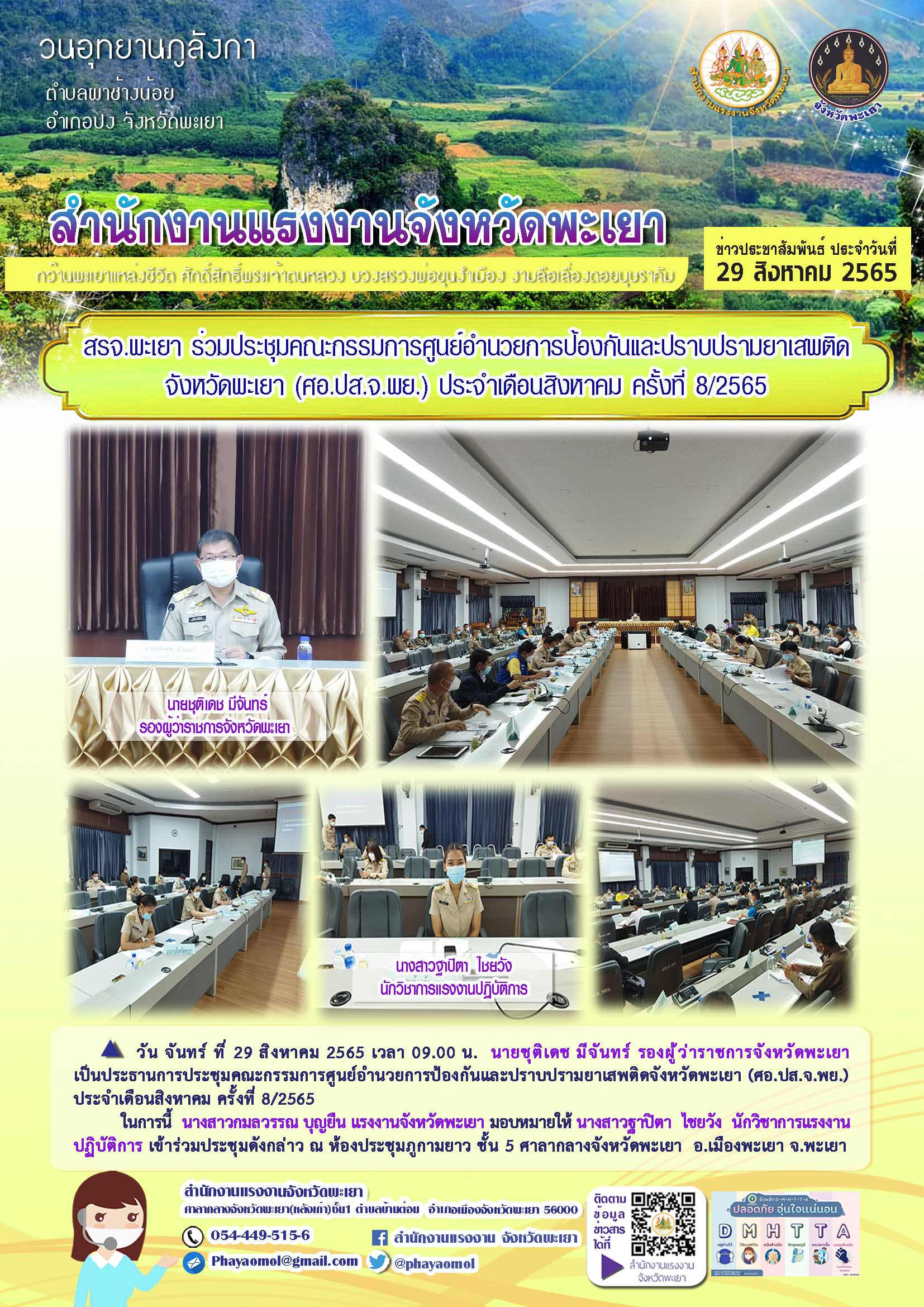 สรจ.พะเยา ร่วมประชุมคณะกรรมการศูนย์อำนวยการป้องกันและปราบปรามยาเสพติดจังหวัดพะเยา (ศอ.ปส.จ.พย.) ประจำเดือนสิงหาคม ครั้งที่ 8/2565