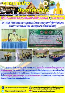 แรงงานจังหวัดอ่างทอง ร่วมพิธีเปิดโครงการอบรมการใช้ตำรับกัญชา ทางการแพทย์แผนไทย และกฎหมายเบื้องต้นที่ควรรู้