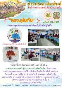 สรจ.สุโขทัย ร่วมประชุมคณะอนุกรรมการพัฒนาแรงงานและประสานงานการฝึกอาชีพจังหวัดสุโขทัย (กพร.ปจ.)