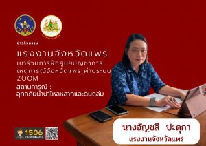 แรงงานจังหวัดแพร่ เข้าร่วมการฝึกบัญชาการเหตุการณ์จังหวัดแพร่ ประจำปีงบประมาณ พ.ศ. 2565 สถานการณ์ฝึก : กรณีอุทกภัยน้ำป่าไหลหลากและดินถล่ม