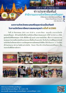 แรงงานจังหวัดนครราชสีมา เข้ากิจกรรมตามโครงการ “ผู้ว่าฯ วิเชียร ชวนเยี่ยมวัด” ประจำเดือนสิงหาคม 2565 ในวันที่ 26 สิงหาคม 2565 เวลา 07.09 น. ณ วัดป่าสาลวัน ตำบลในเมือง อำเภอเมืองนครราชสีมา จังหวัดนครราชสีมา
