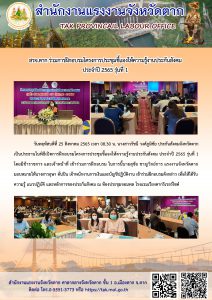 รองผู้ว่าราชการจังหวัดตาก เป็นประธานการประชุมหัวหน้าส่วนราชการสังกัดกระทรวงแรงงานจังหวัดตาก และคณะกรรมการศูนย์ปฏิบัติการป้องกันการค้ามนุษย์ด้านแรงงานจังหวัดตาก ครั้งที่ 11/2565 ประจำปีงบประมาณ พ.ศ. 2565