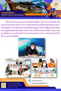 แรงงานจังหวัดตรัง ร่วมจัดกิจกรรมแรงงานเคลื่อนที่ร่วมกับโครงการหน่วยบำบัดทุกข์ บำรุงสุข สร้างรอยยิ้มให้ประชาชนจังหวัดตรัง