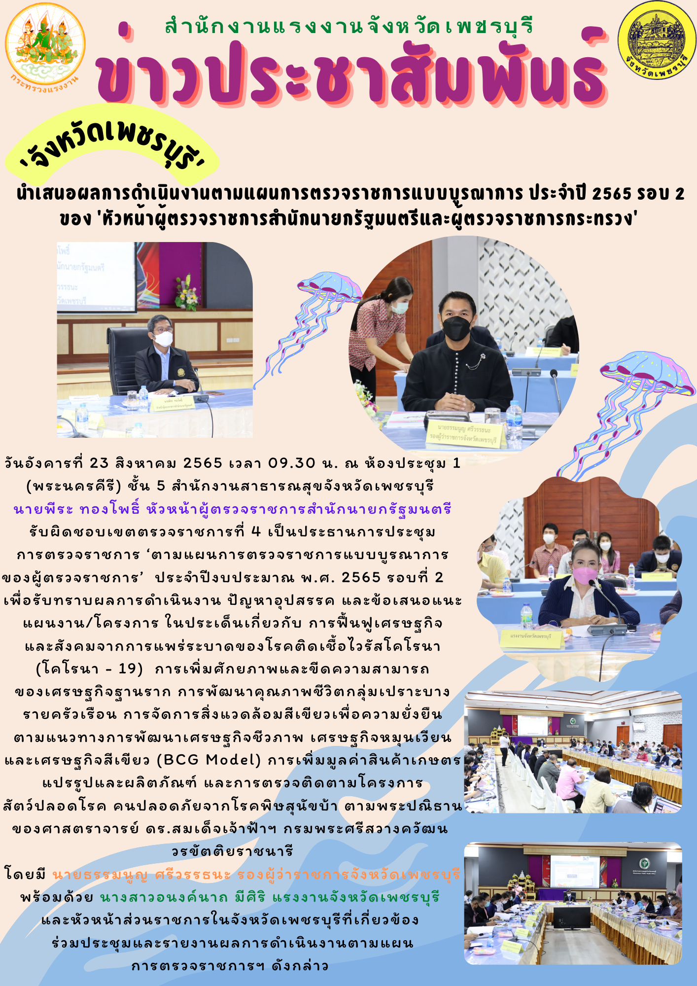 ‘จังหวัดเพชรบุรี’ นำเสนอผลการดำเนินงานตามแผนการตรวจราชการแบบบูรณาการ ประจำปี 2565 รอบ 2 ของ ‘หัวหน้าผู้ตรวจราชการสำนักนายกรัฐมนตรีและผู้ตรวจราชการกระทรวง’