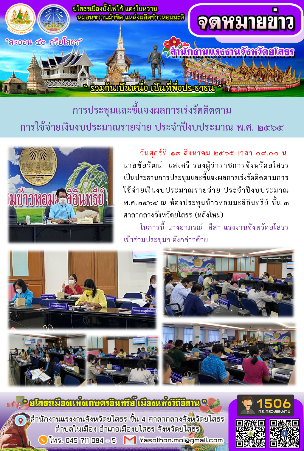 สรจ.ยส เข้าร่วมประชุมและชี้แจงผลการเร่งรัดติดตาม การใช้จ่ายเงินงบประมาณรายจ่าย ประจำปีงบประมาณ พ.ศ. 2565