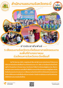 5 เสือแรงงานจังหวัดกระบี่พร้อมอาสาสมัครแรงงานลงพื้นที่อำเภอเขาพนม ร่วมโครงการจังหวัดกระบี่เคลื่อนที่