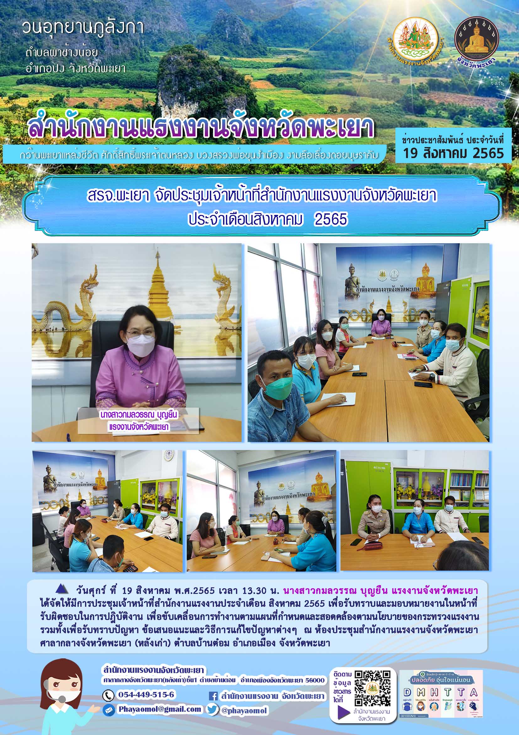 สรจ.พะเยา จัดประชุมเจ้าหน้าที่สำนักงานแรงงานจังหวัดพะเยา ประจำเดือนสิงหาคม 2565