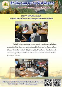 สรจ.ตาก ให้คำปรึกษา แนะนำ การขอรับเงินบำเหน็จชราภาพจากกองทุนประกันภัยแรงงานไต้หวัน