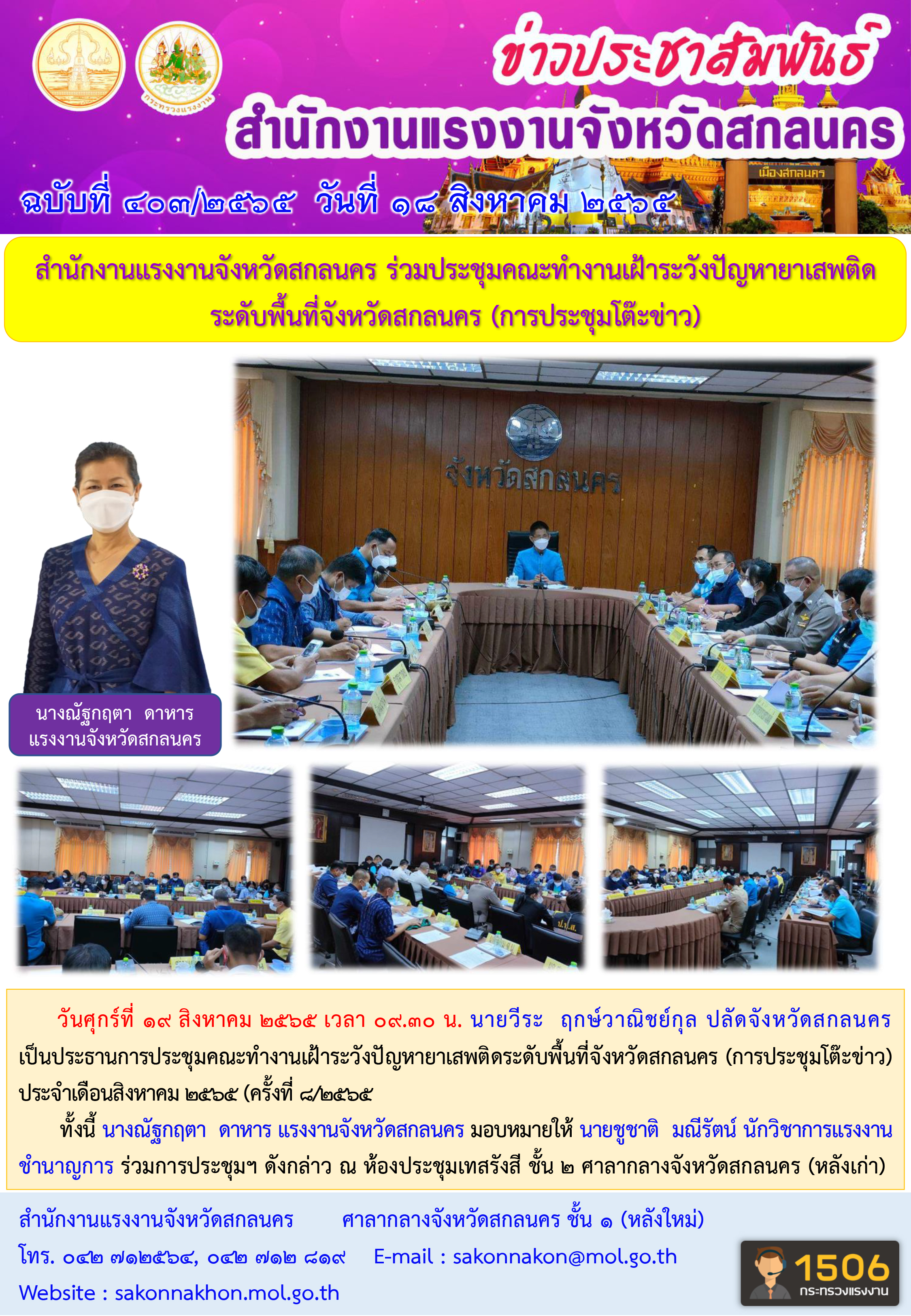 งานแรงงานจังหวัดสกลนคร ร่วมประชุมคณะทำงานเฝ้าระวังปัญหายาเสพติดระดับพื้นที่จังหวัดสกลนคร (การประชุมโต๊ะข่าว)