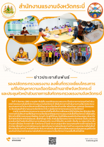 รองปลัดกระทรวงแรงงาน ลงพื้นที่ตรวจเยี่ยมโครงการแก้ไขปัญหาความเดือดร้อนด้านอาชีพจังหวัดกระบี่ และประชุมหัวหน้าส่วนราชการสังกัดกระทรวงแรงงานจังหวัดกระบี่