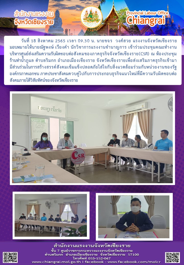 สรจ.เชียงราย ร่วมประชุมคณะทำงานบริหารศูนย์ส่งเสริมความรับผิดชอบต่อสังคมของภาคธุรกิจจังหวัดเชียงราย(CSR)