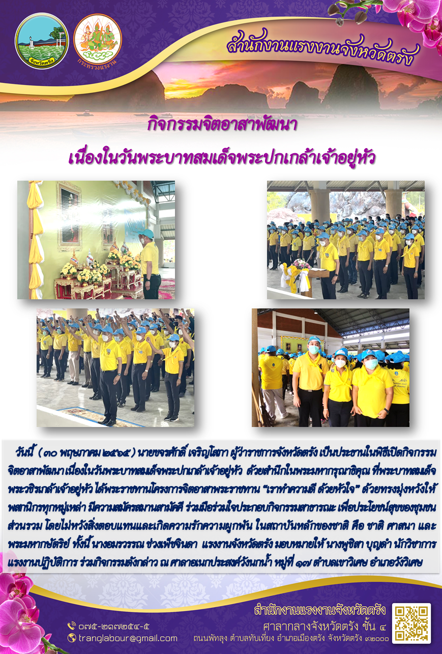 สรจ.ตรัง ร่วมกิจกรรมจิตอาสาพัฒนา เนื่องในวันพระบาทสมเด็จพระปกเกล้าเจ้าอยู่หัว