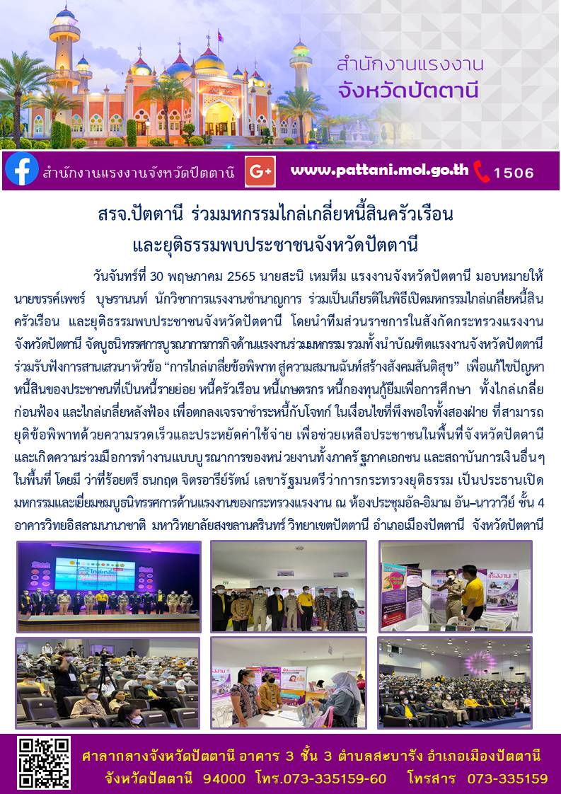 สรจ.ปัตตานี ร่วมมหกรรมไกล่เกลี่ยหนี้สินครัวเรือน และยุติธรรมพบประชาชนจังหวัดปัตตานี