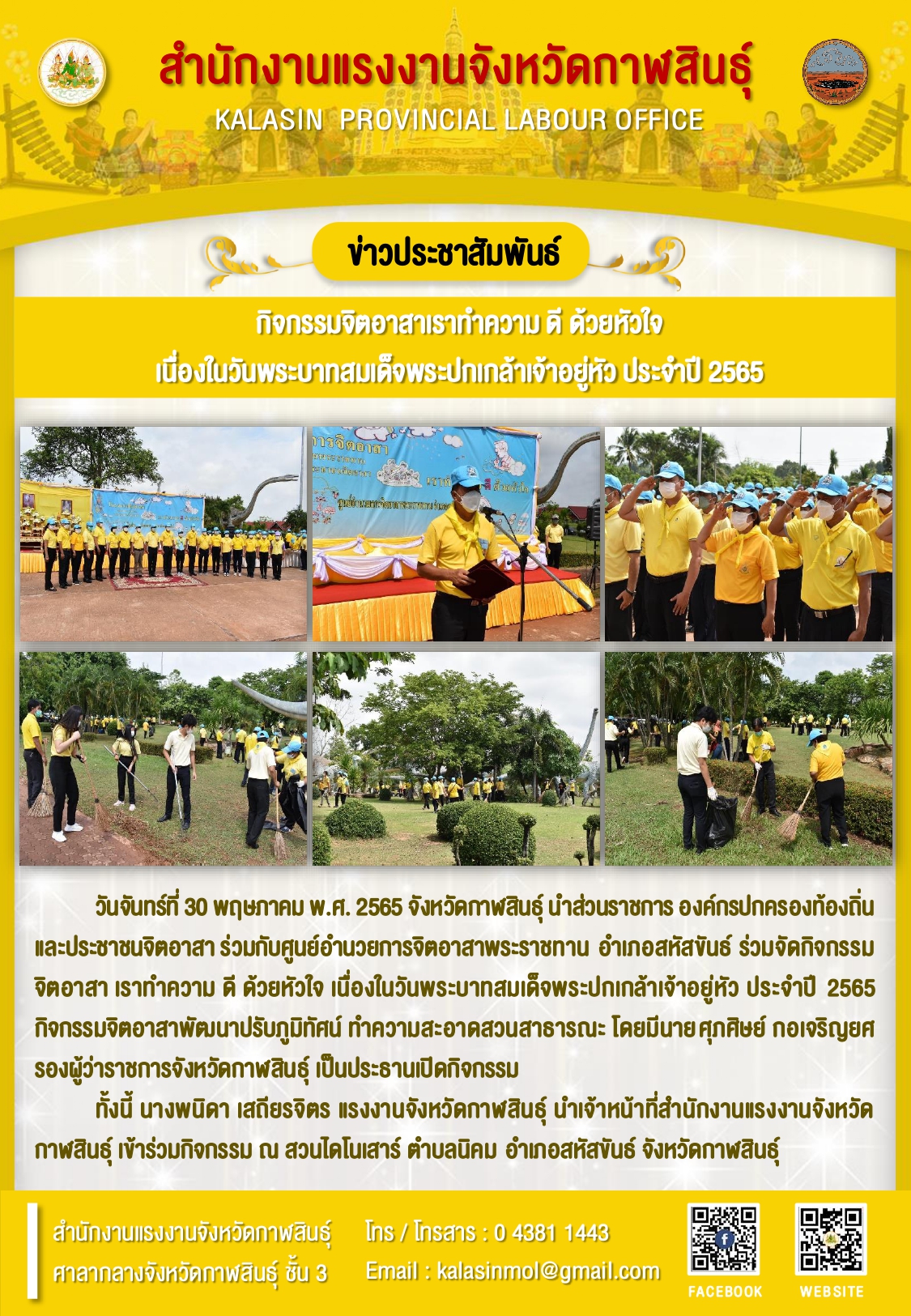 แรงงานจังหวัดกาฬสินธุ์ นำเจ้าหน้าที่สำนักงานแรงงานจังหวัดกาฬสินธุ์ ร่วมกิจกรรมจิตอาสาเราทำความดีด้วยหัวใจ