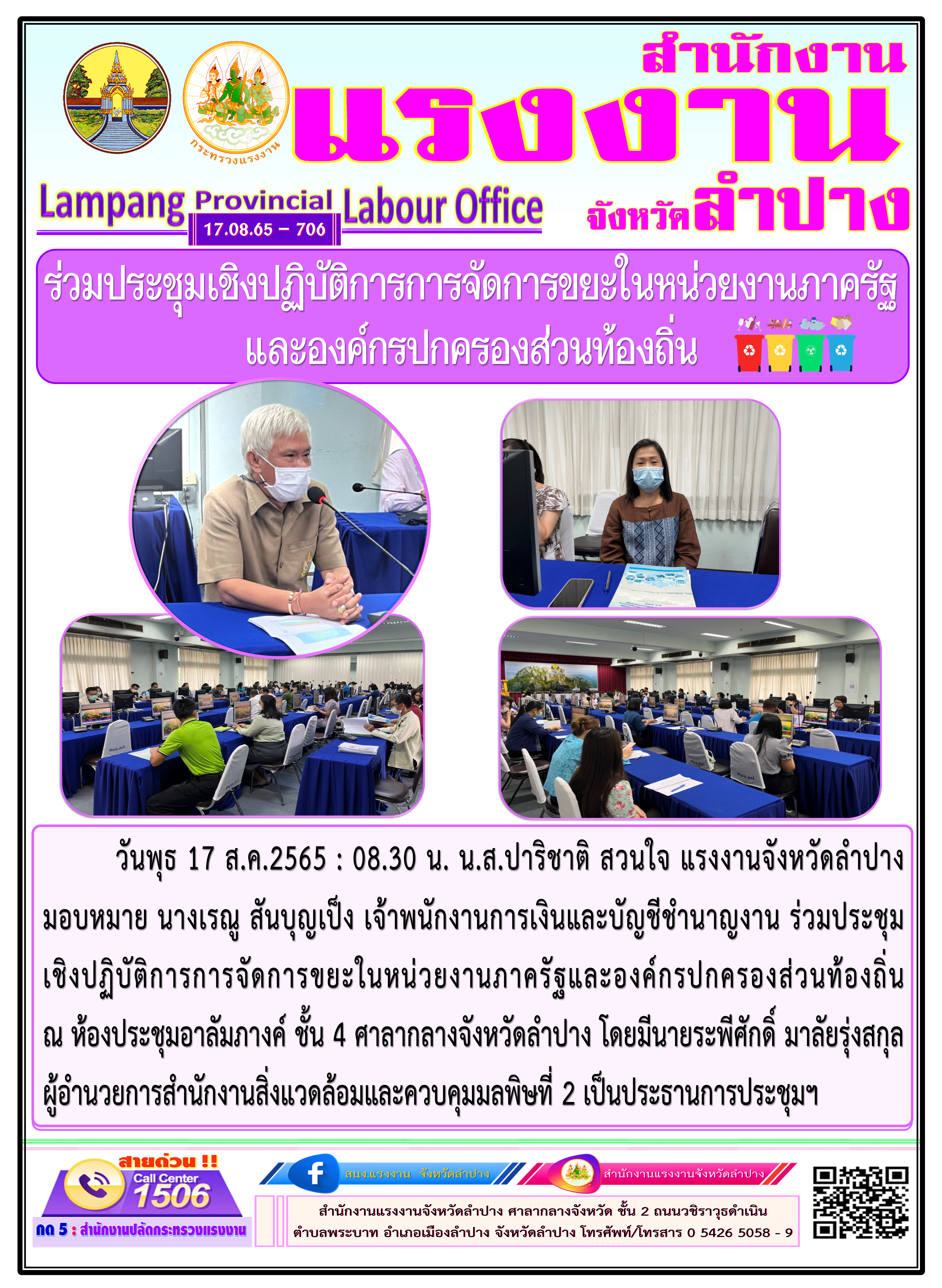 สรจ.ลำปาง ร่วมประชุมเชิงปฏิบัติการการจัดการขยะในหน่วยงานภาครัฐ และองค์กรปกครองส่วนท้องถิ่น