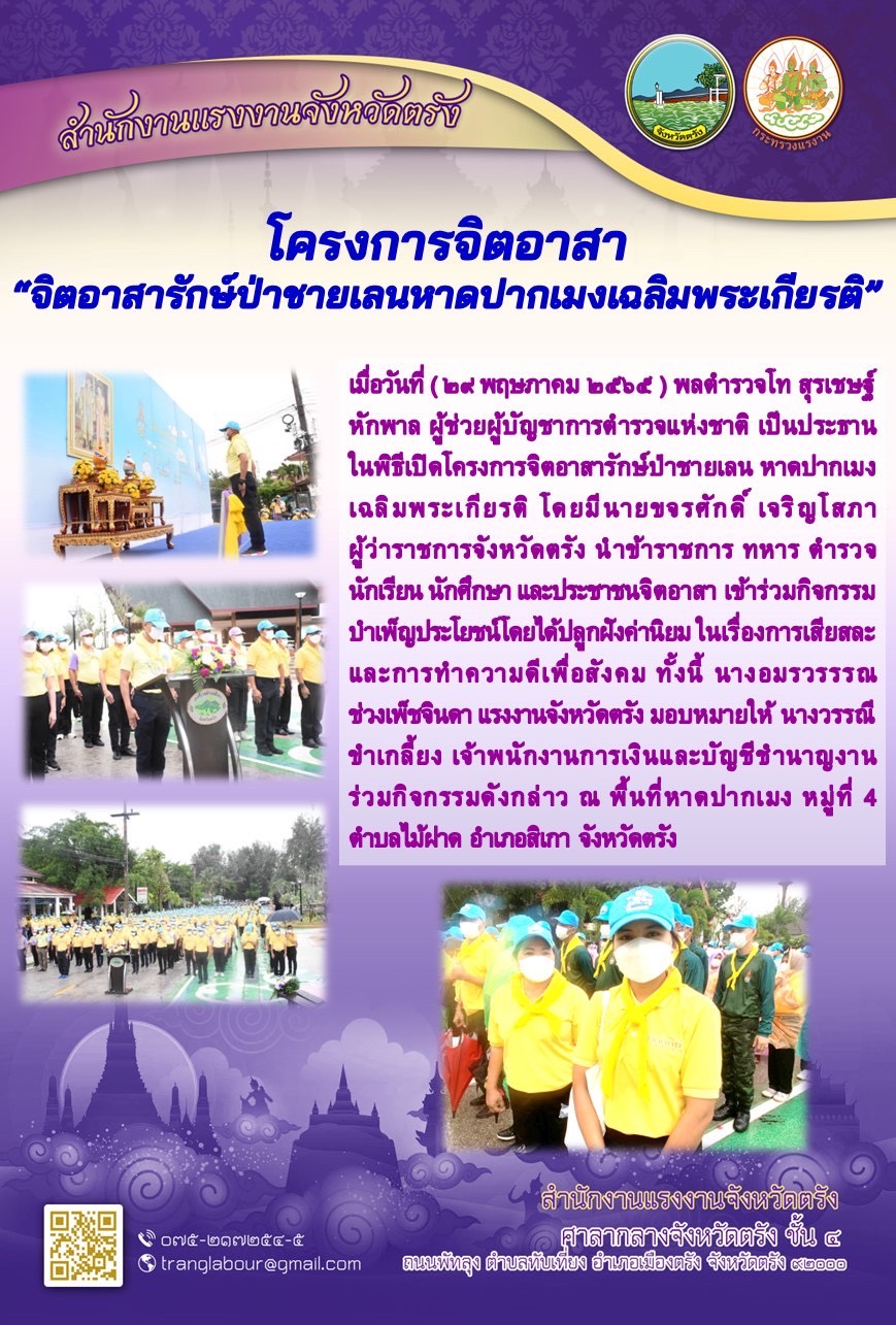 สรจ.ตรัง ร่วมโครงการจิตอาสา “จิตอาสารักษ์ป่าชายเลนหาดปากเมงเฉลิมพระเกียรติ”