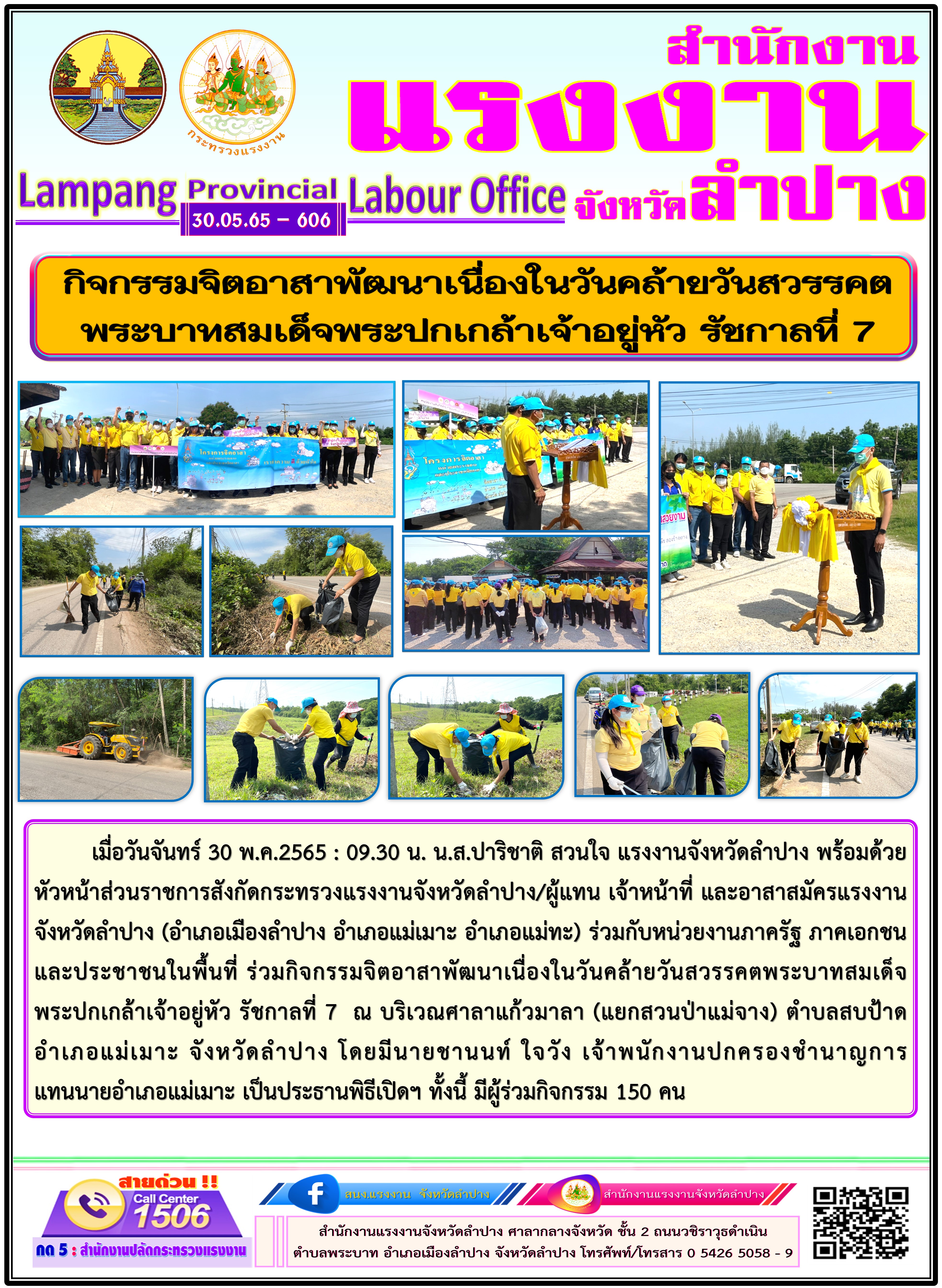 แรงงานจังหวัดลำปาง ร่วมกิจกรรมจิตอาสาพัฒนาเนื่องในวันคล้ายวันสวรรคตพระบาทสมเด็จพระปกเกล้าเจ้าอยู่หัว รัชกาลที่ 7