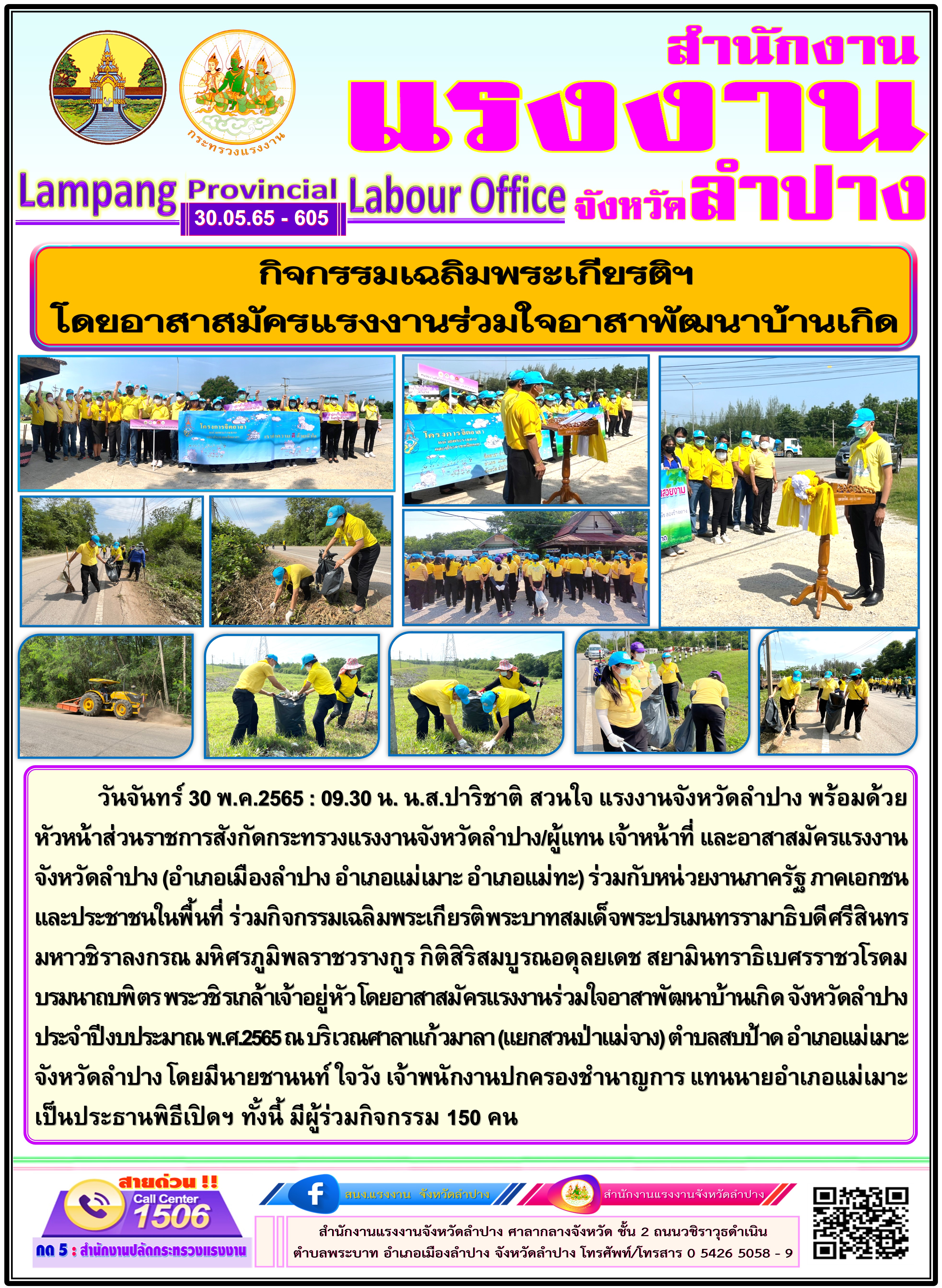 แรงงานจังหวัดลำปาง ร่วมกิจกรรมเฉลิมพระเกียรติฯ โดยอาสาสมัครแรงงานร่วมใจอาสาพัฒนาบ้านเกิด