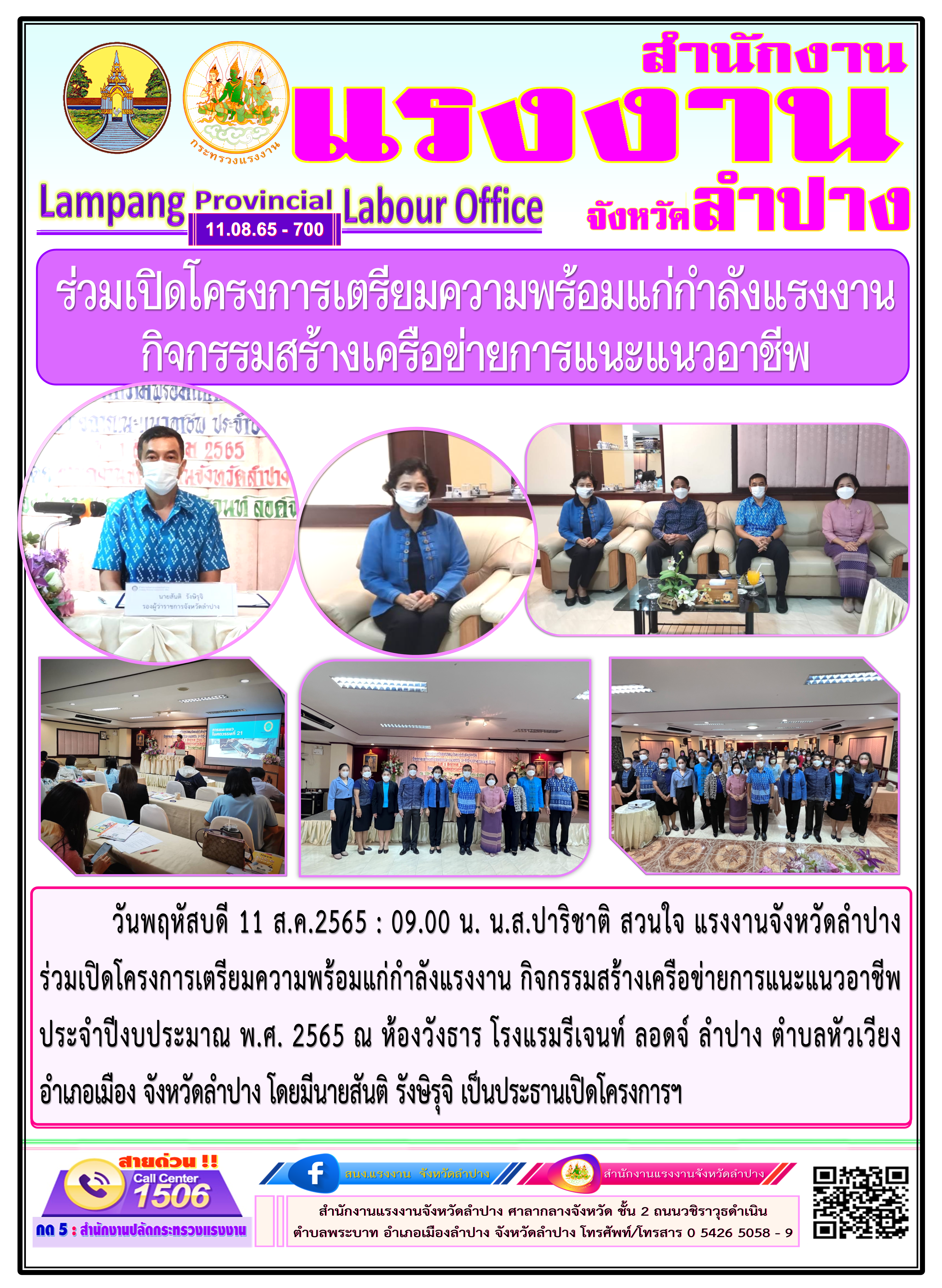 สรจ.ลำปาง ร่วมเปิดโครงการเตรียมความพร้อมแก่กำลังแรงงาน กิจกรรมสร้างเครือข่ายการแนะแนวอาชีพ
