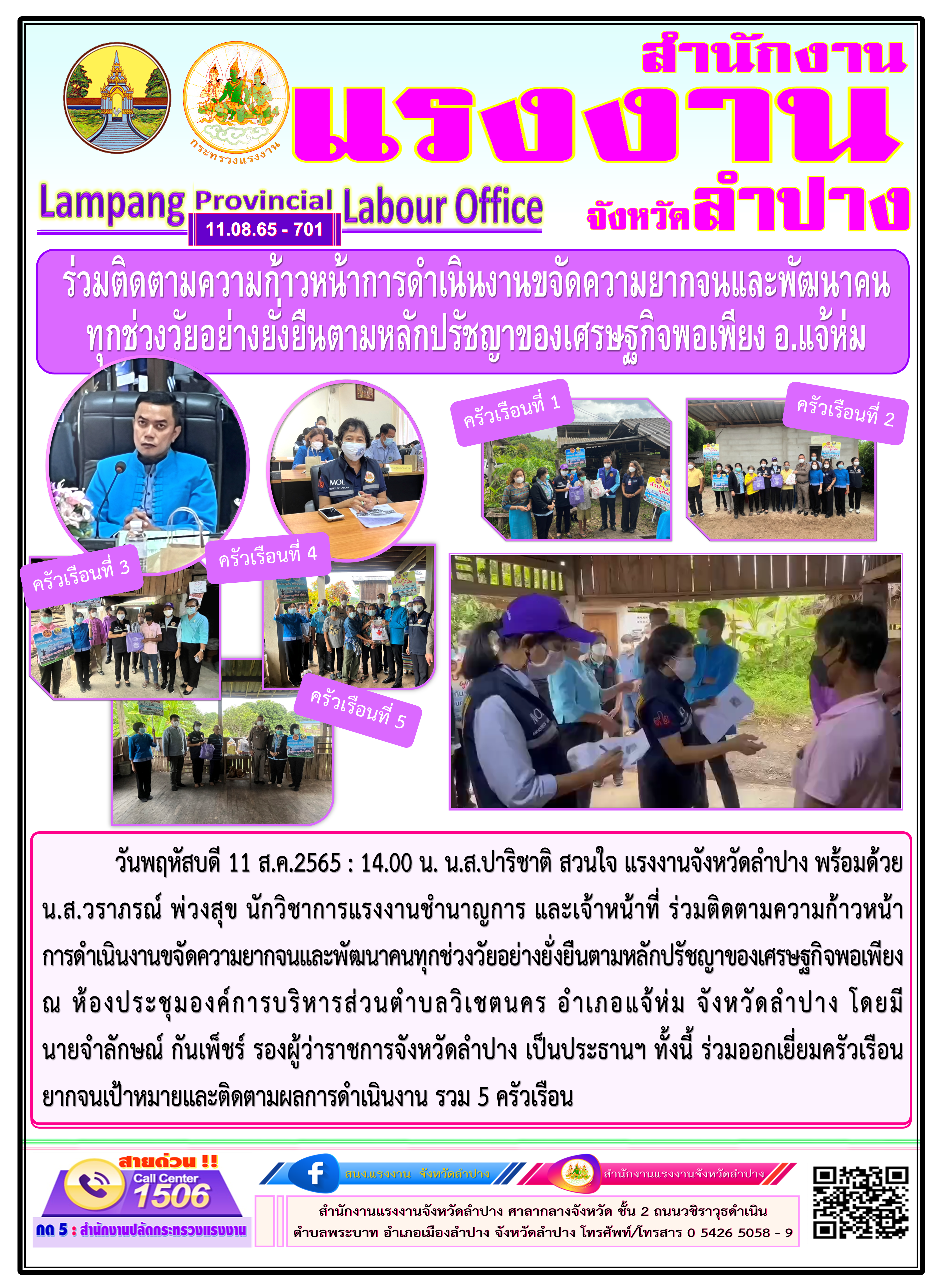 สรจ.ลำปาง ร่วมติดตามความก้าวหน้าการดำเนินงานขจัดความยากจนและพัฒนาคนทุกช่วงวัยอย่างยั่งยืนตามหลักปรัชญาของเศรษฐกิจพอเพียง อ.แจ้ห่ม
