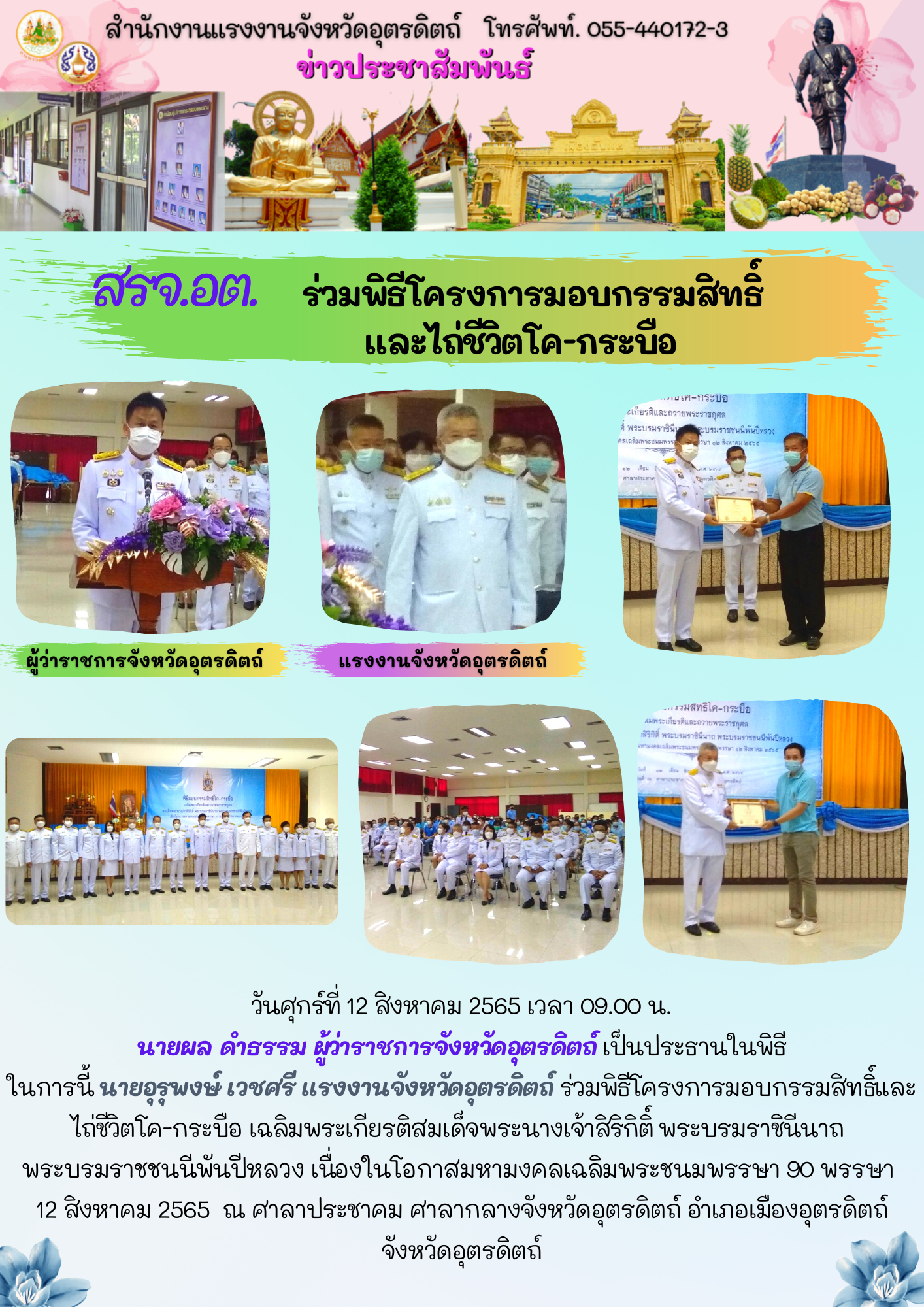 ข่าวกิจกรรมสำนักงานแรงงานจังหวัดลพบุรี ประจำวันพฤหัสบดีที่ 11 สิงหาคม 2565