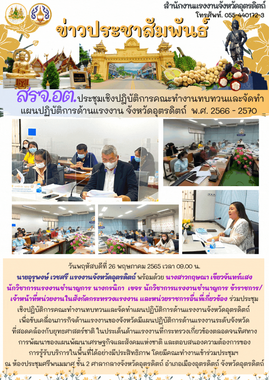 สรจ.อต. ประชุมเชิงปฎิบัติการคณะทำงานทบทวนและจัดทำแผนปฏิบัติการด้านแรงงาน จังหวัดอุตรดิตถ์ พ.ศ. 2566 – 2570