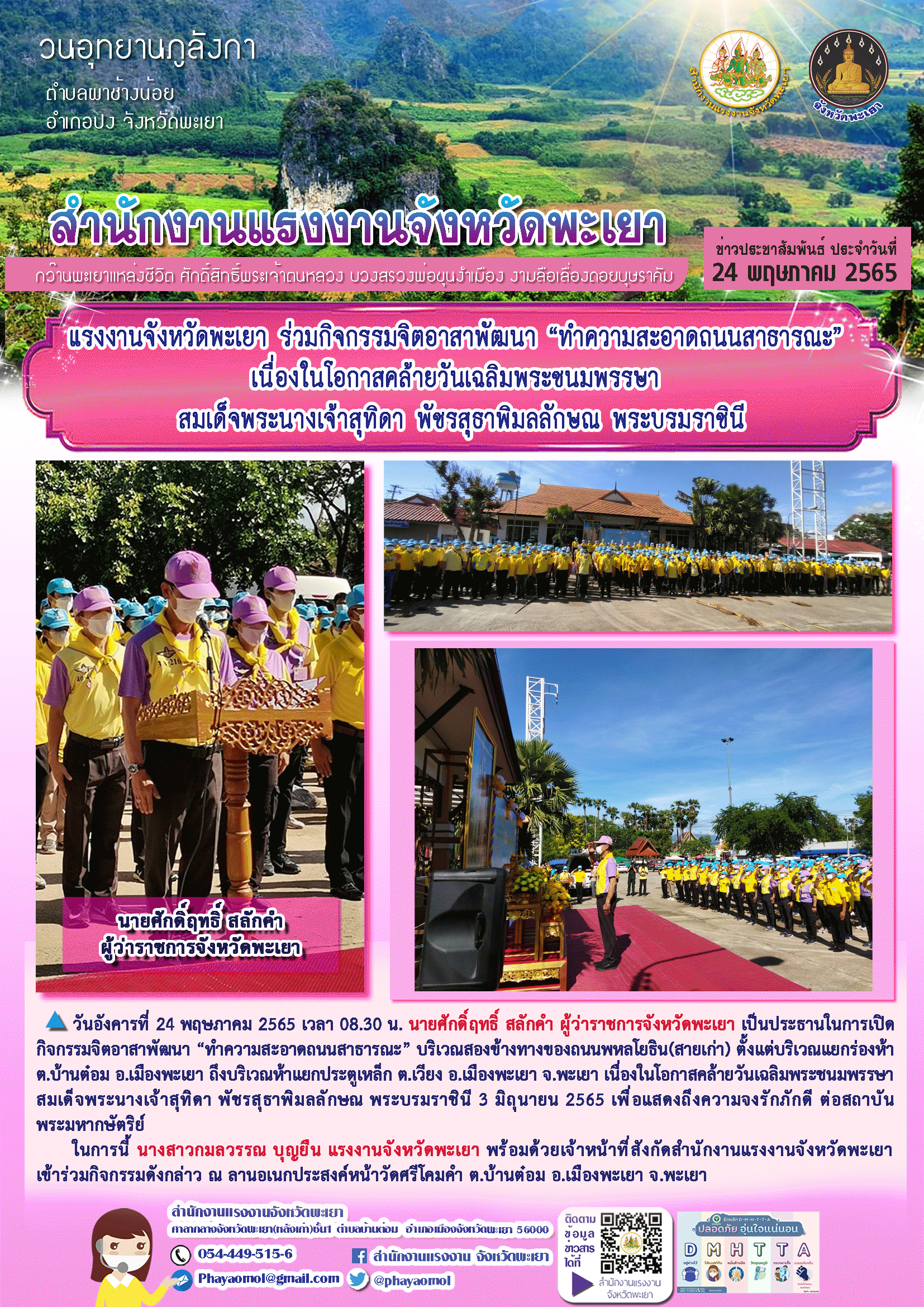 แรงงานจังหวัดพะเยา ร่วมกิจกรรมจิตอาสาพัฒนา “ทำความสะอาดถนนสาธารณะ”
