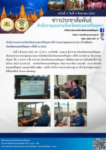 สำนักงานแรงงานจังหวัดพระนครศรีอยุธยาเข้าร่วมประชุมคณะกรรมการโรคติดต่อจังหวัดพระนครศรีอยุธยา ครั้งที่ 21/2565