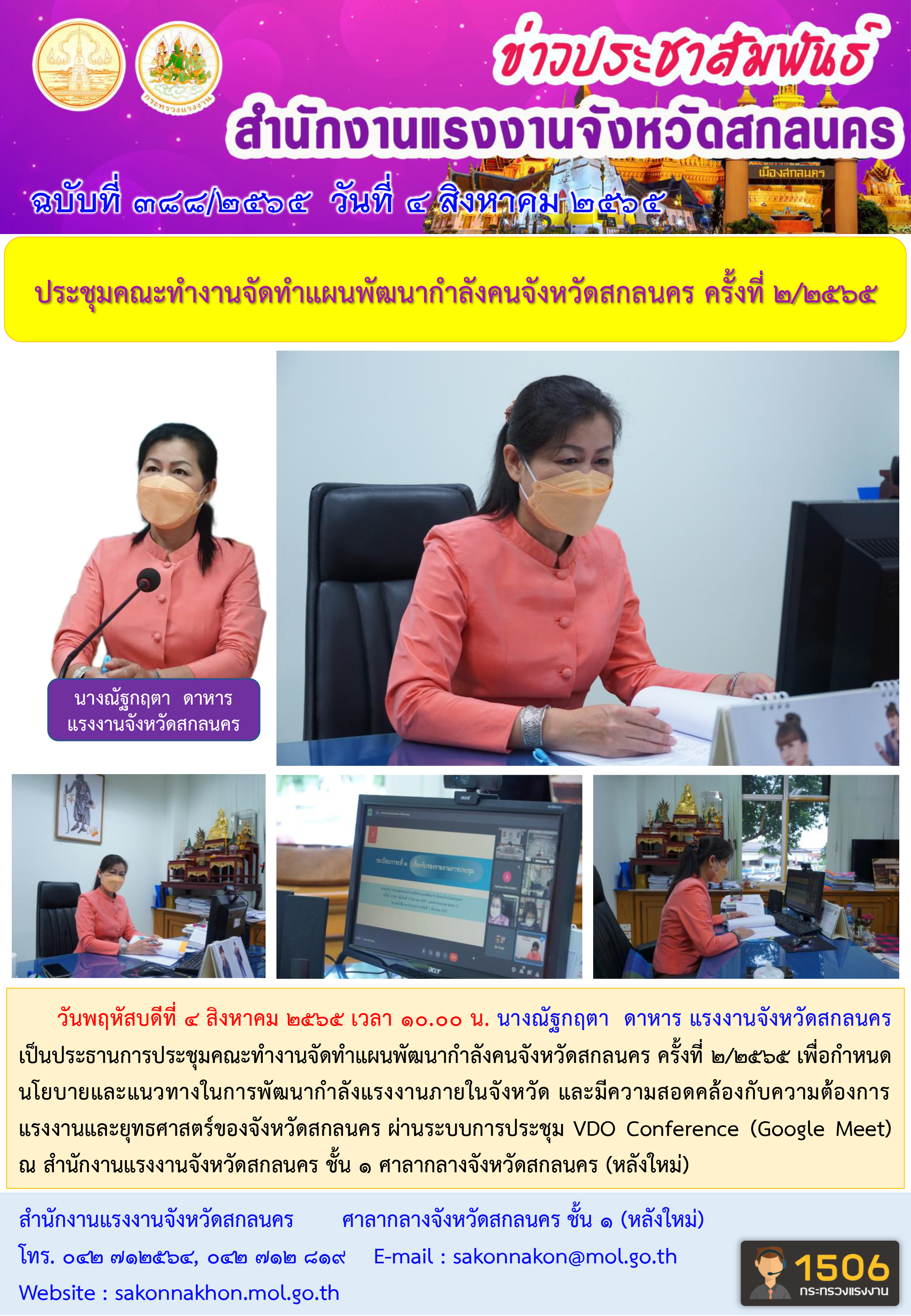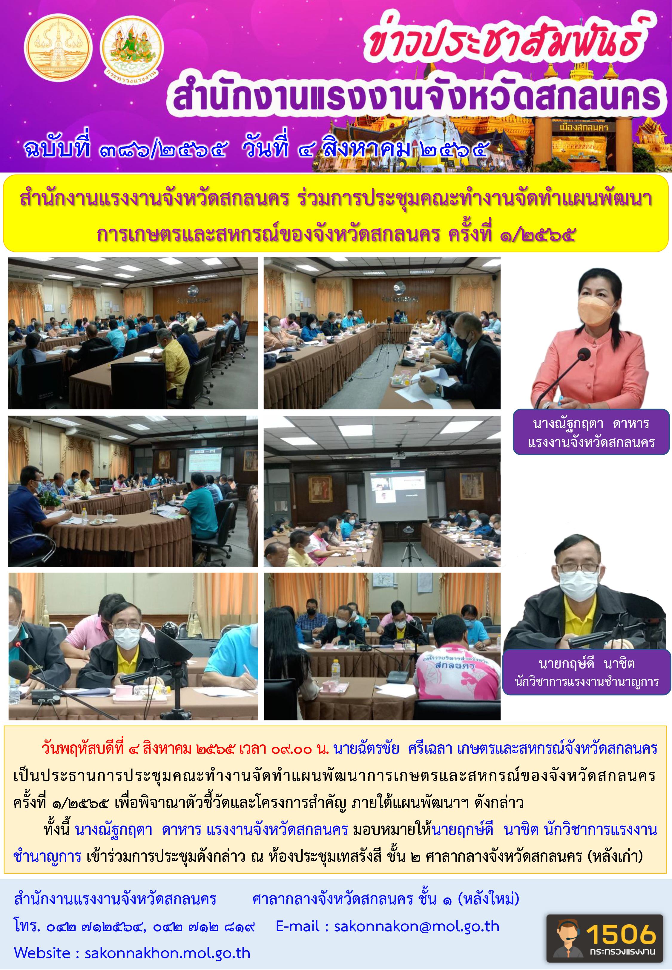 สำนักงานแรงงานจังหวัดสกลนคร ร่วมประุมคณะทำงานจัดทำแผนพัฒนาการเกษตรและสหกรณ์ของจังหวัดสกลนคร ครั้งที่ 1/2565