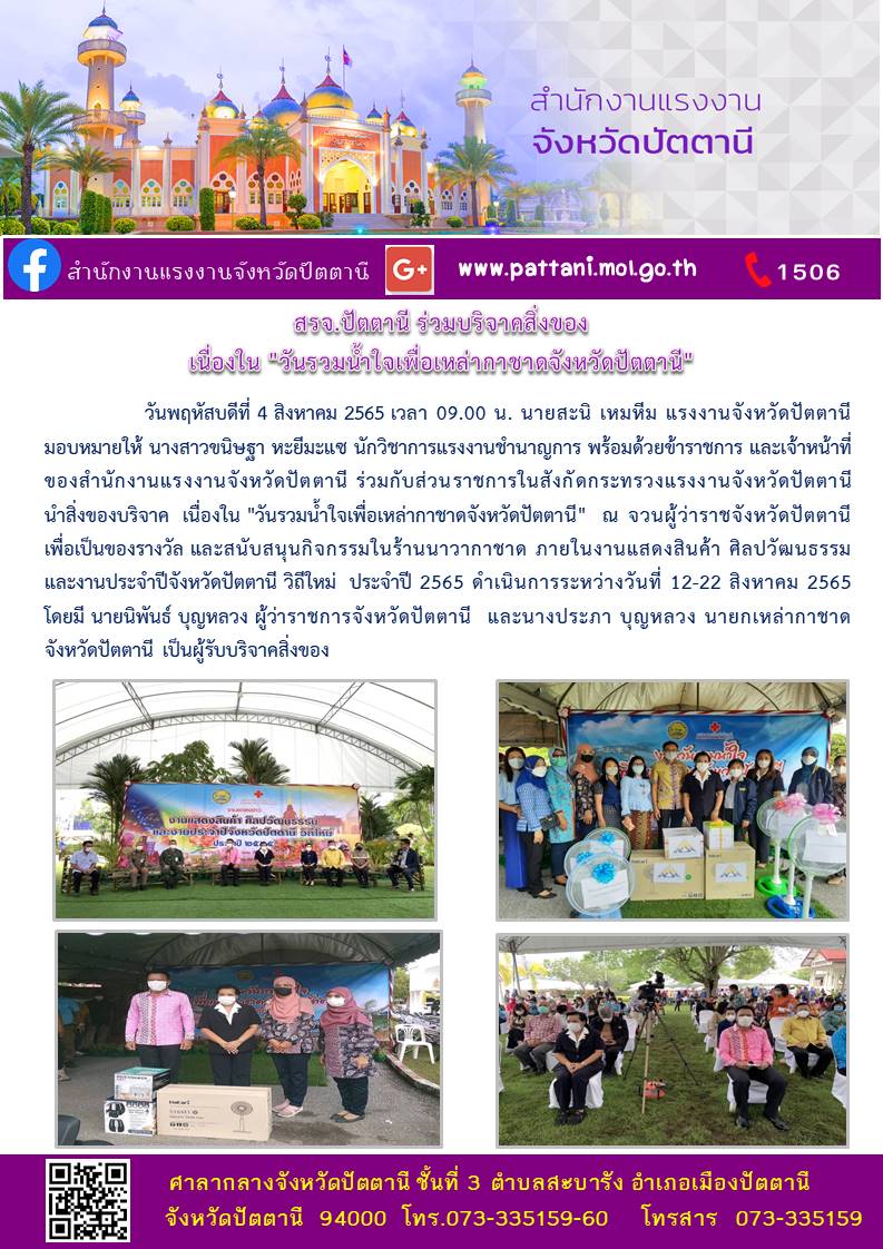 สรจ.ปัตตานี ร่วมบริจาคสิ่งของ เนื่องใน “วันรวมน้ำใจเพื่อเหล่ากาชาดจังหวัดปัตตานี”
