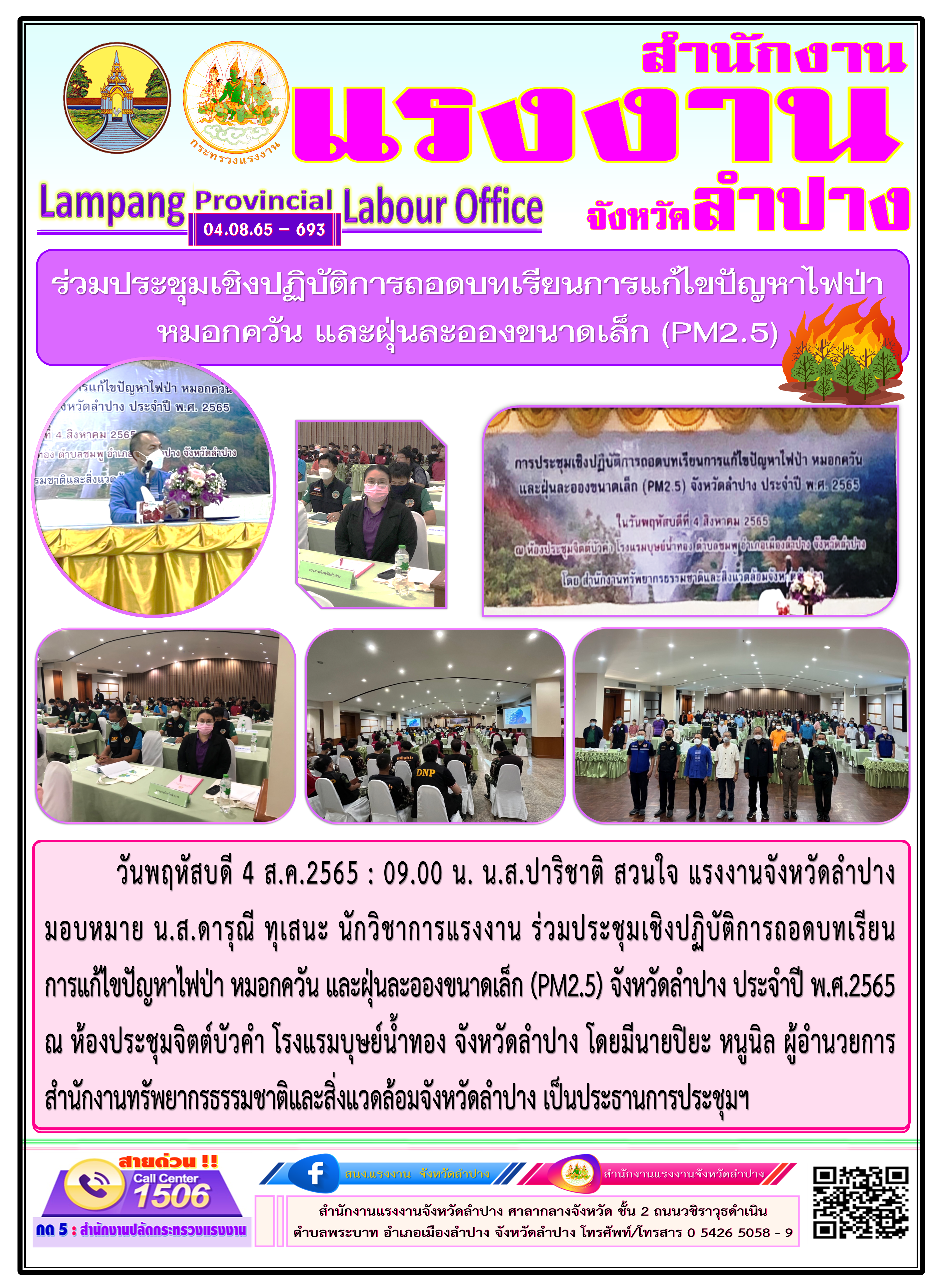 สรจ.ลำปาง ร่วมประชุมเชิงปฏิบัติการถอดบทเรียนการแก้ไขปัญหาไฟป่า หมอกควัน และฝุ่นละอองขนาดเล็ก (PM2.5)