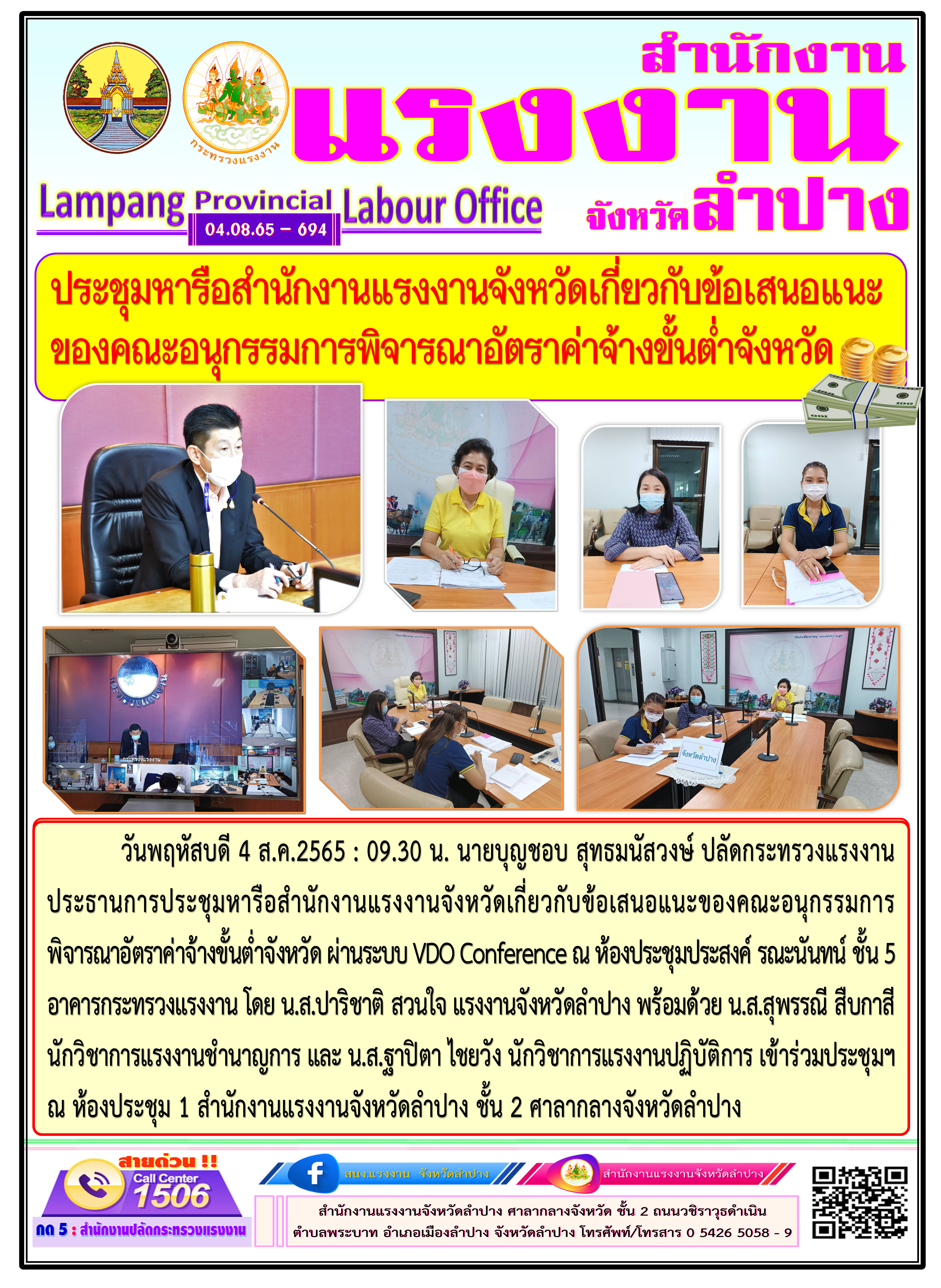 สรจ.ลำปาง ร่วมประชุมหารือสำนักงานแรงงานจังหวัดเกี่ยวกับข้อเสนอแนะของคณะอนุกรรมการพิจารณาอัตราค่าจ้างขั้นต่ำจังหวัด