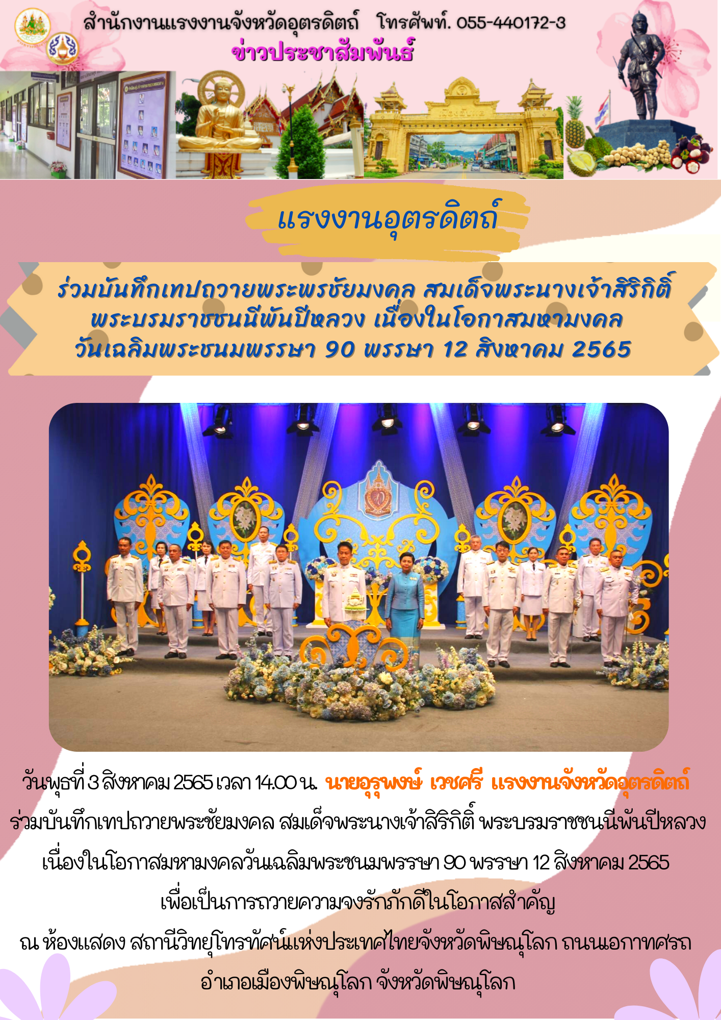 แรงงานจังหวัดอุตรดิตถ์ ร่วมบันทึกเทปถวายพระชัยมงคล สมเด็จพระนางเจ้าสิริกิติ์ พระบรมราชชนนีพันปีหลวง