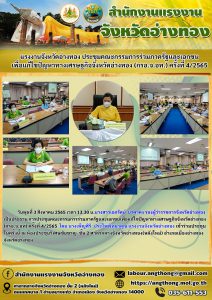 แรงงานจังหวัดอ่างทอง ประชุมคณะกรรมการร่วมภาครัฐและเอกชน เพื่อแก้ไขปัญหาทางเศรษฐกิจจังหวัดอ่างทอง (กรอ.จ.อท.) ครั้งที่ 4/2565