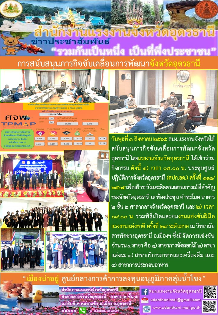 การสนับสนุนภารกิจขับเคลื่อนการพัฒนาจังหวัดอุดรธานี