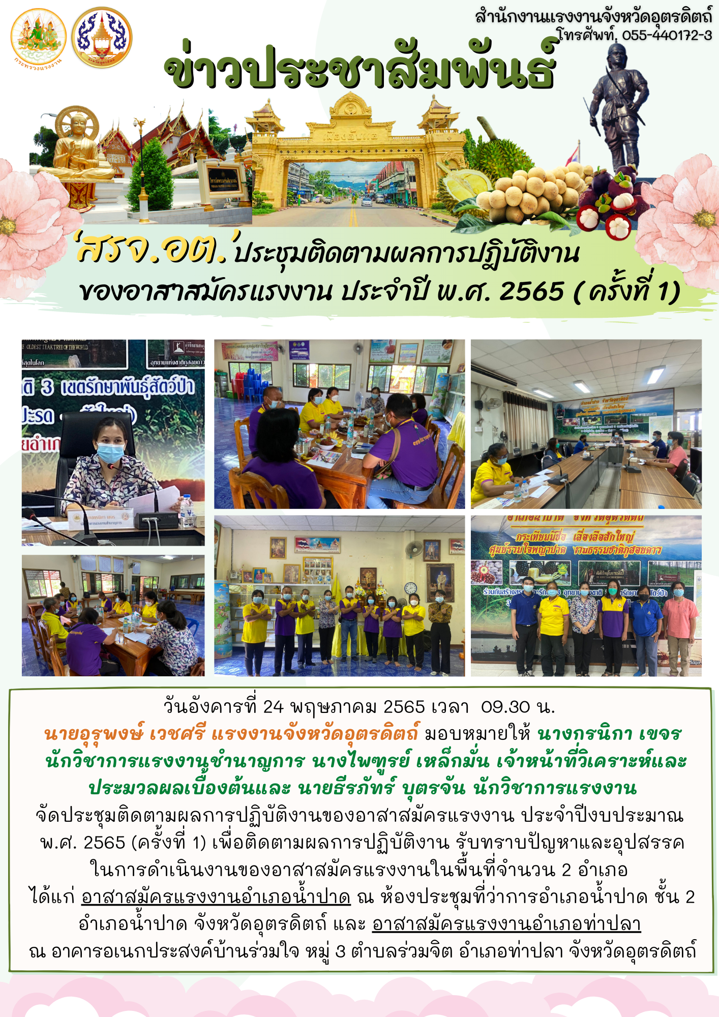 สรจ.อต. ประชุมติดตามผลการปฎิบัติงานของอาสาสมัครแรงงาน ประจำปี พ.ศ.2565 ( ครั้งที่ 1)