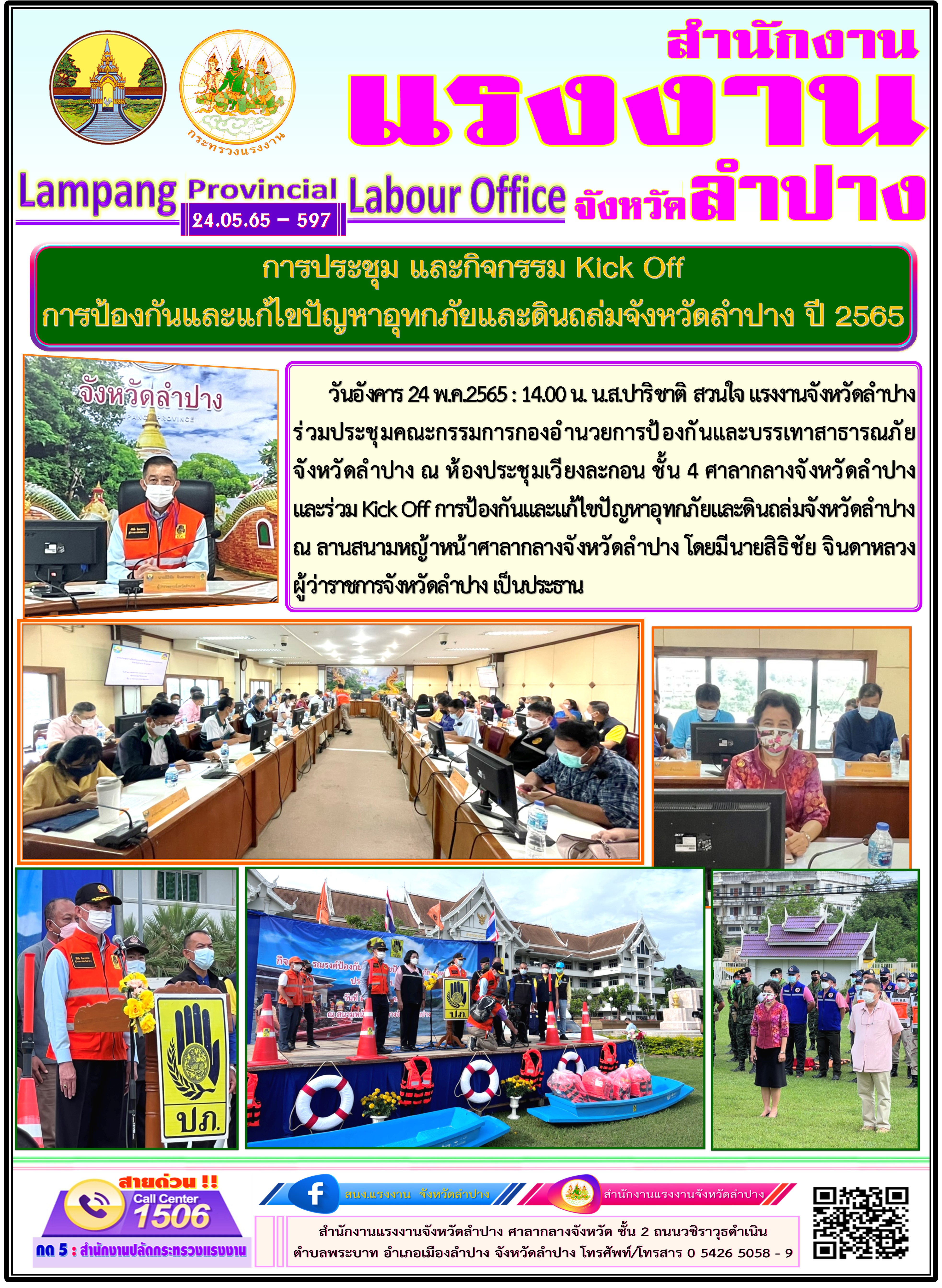 แรงงานจังหวัดลำปาง ร่วมการประชุมและกิจกรรม Kick Off การป้องกันและแก้ไขปัญหาอุทกภัยและดินถล่มจังหวัดลำปาง ปี 2565