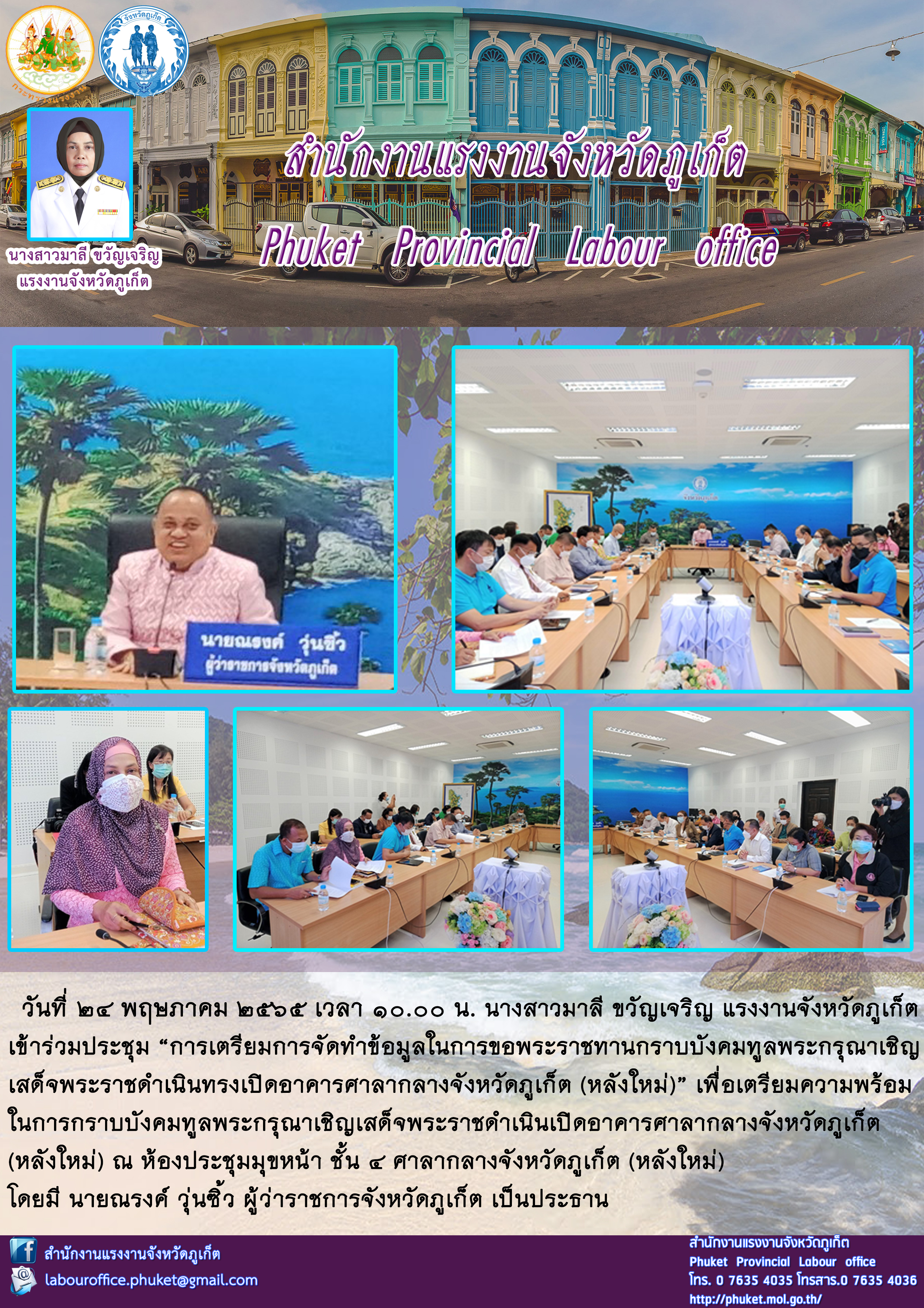 แรงงานจังหวัดภูเก็ต ร่วมประชุม “การเตรียมการจัดทำข้อมูลในการขอพระราชทานกราบบังคมทูลพระกรุณาเชิญเสด็จพระราชดำเนินทรงเปิดอาคารศาลากลางจังหวัดภูเก็ต (หลังใหม่)”