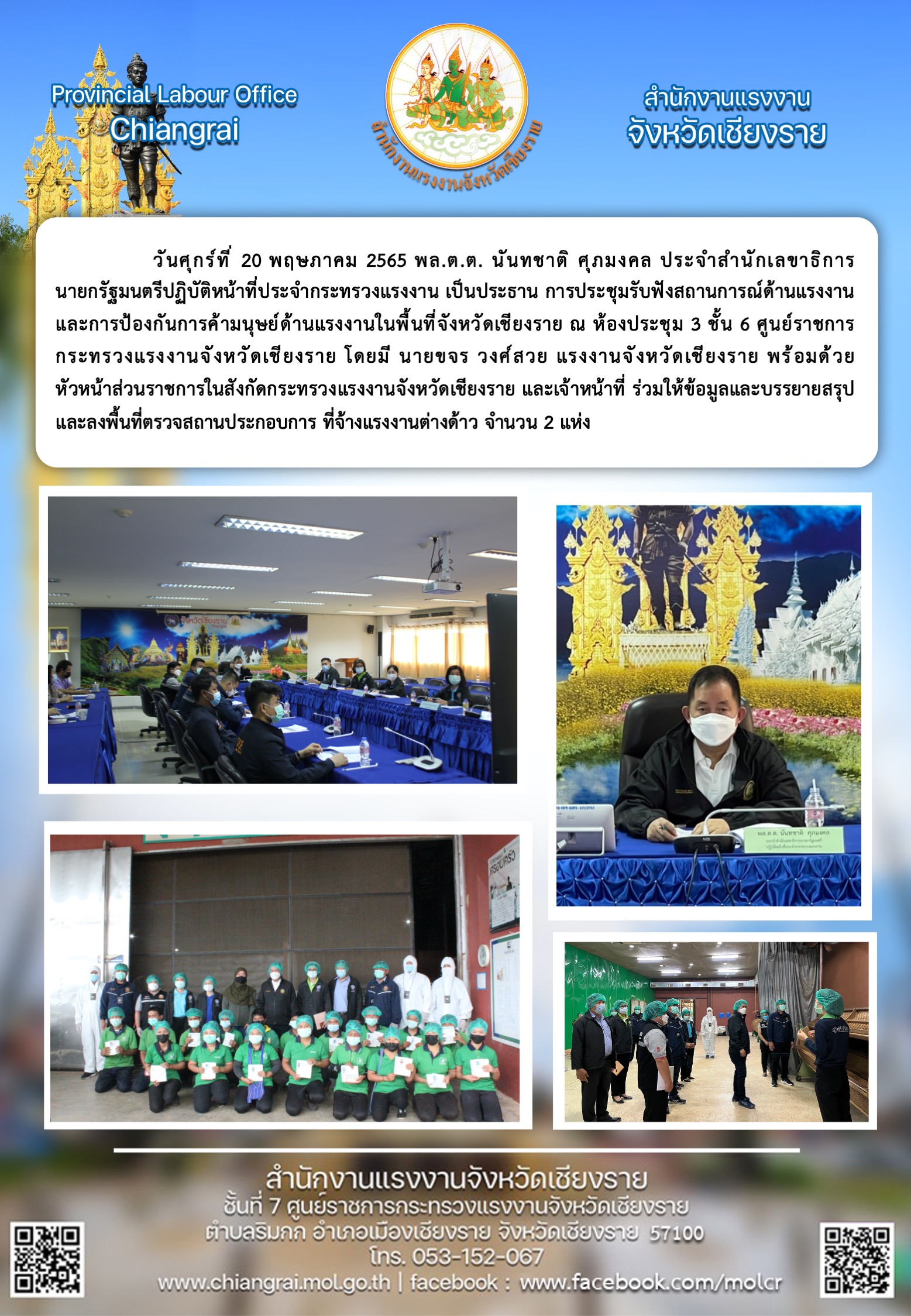 สรจ.เชียงราย ร่วมประชุมรับฟังสถานการณ์ด้านแรงงานและการป้องกันการค้ามนุษย์ด้านแรงงานในพื้นที่จังหวัดเชียงราย