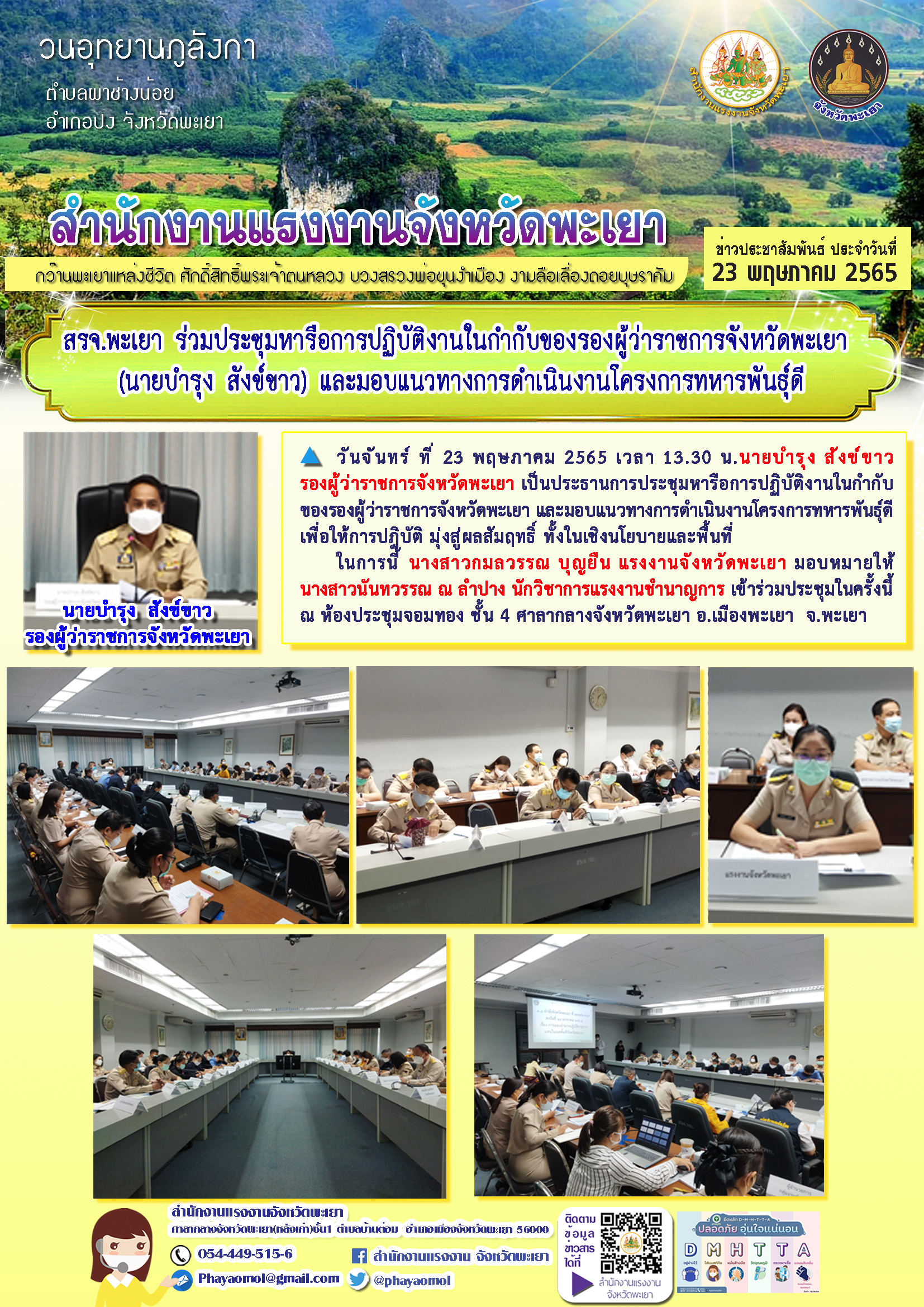 สรจ.พะเยา ร่วมประชุมหารือการปฏิบัติงานในกำกับของรองผู้ว่าราชการจังหวัดพะเยา (นายบำรุง สังข์ขาว)และมอบแนวทางการดำเนินงานโครงการทหารพันธุ์ดี