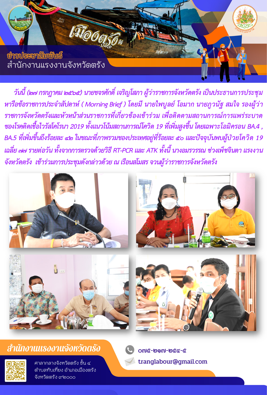 แรงงานจังหวัดตรัง ร่วมการประชุมหารือข้อราชการประจำสัปดาห์ ( Morning Brief )