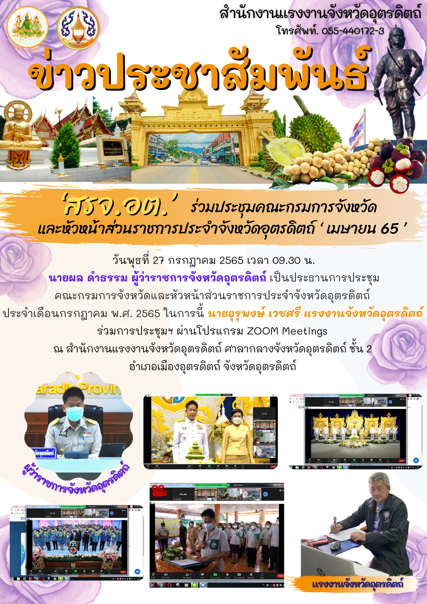 สรจ.อต ร่วมประชุมคณะกรมการจังหวัด และหัวหน้าส่วนราชการประจำจังหวัดอุตรดิตถ์ ‘กรกฎาคม 65 ’
