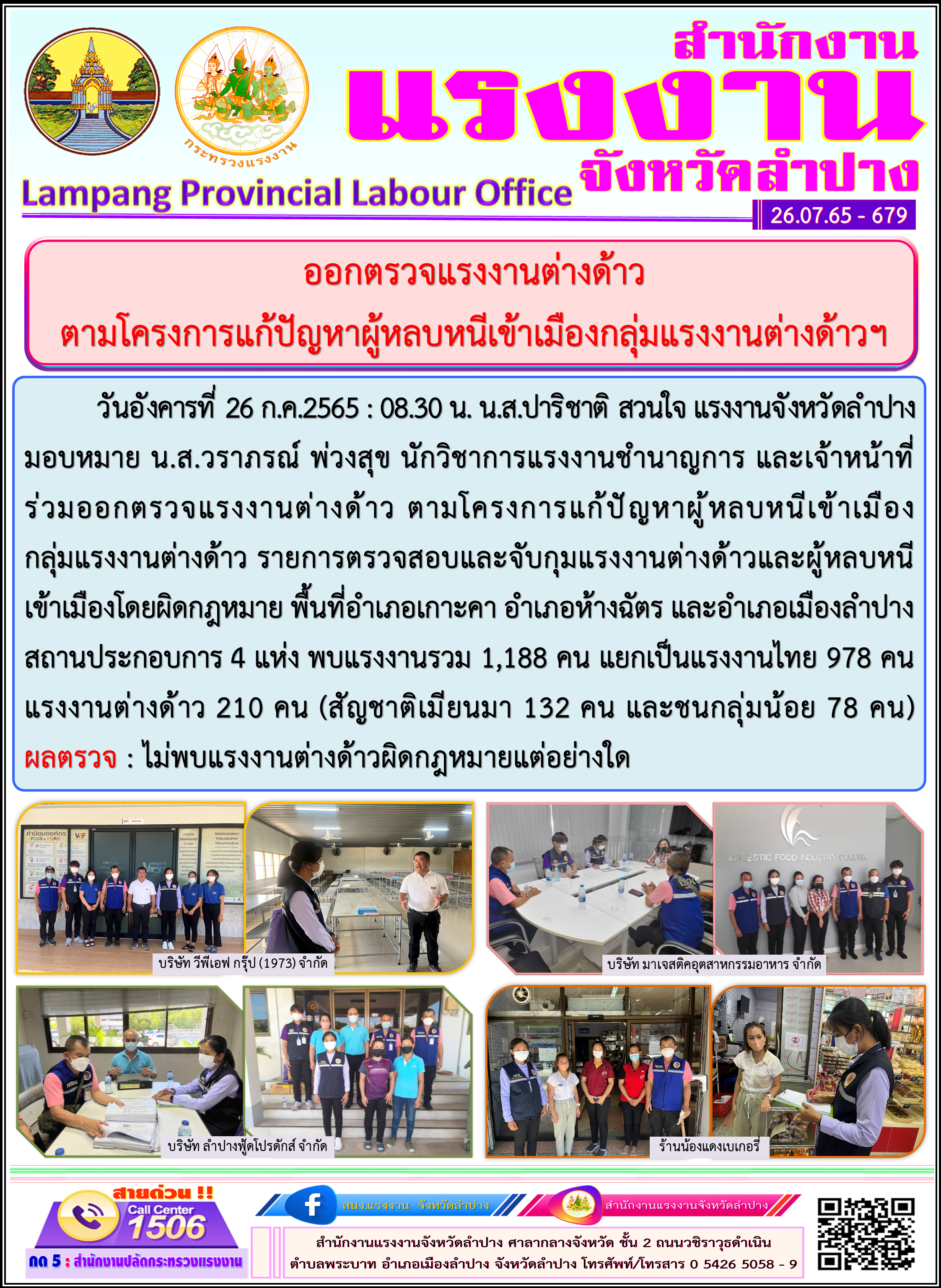 ออกตรวจแรงงานต่างด้าว ตามโครงการแก้ปัญหาผู้หลบหนีเข้าเมืองกลุ่มแรงงานต่างด้าวฯ