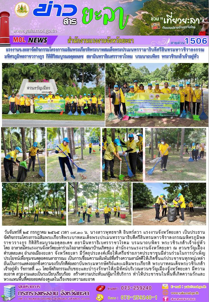 สรจ.ยะลา ร่วมกิจกรรมเฉลิมพระเกียรติพระบาทสมเด็จพระปรเมนทรรามาธิบดี ศรีสินทรมหาวชิราลงกรณ มหิศรภูมิพลราชวรางกูร กิติสิริสมบูรณอดุลยเดช สยามินทรา ธิเบศรราชวโรดม บรมนาถบพิตร พระวชิรเกล้าเจ้าอยู่หัว โดยอาสาสมัครแรงงานร่วมใจอาสาพัฒนาบ้านเกิด