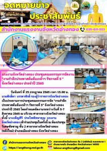 แรงงานจังหวัดอ่างทอง ประชุมคณะกรรมการจัดงาน “งานรำลึกประพาสต้นล้นเกล้าฯ รัชกาลที่ 5” จังหวัดอ่างทอง ประจำปี 2565