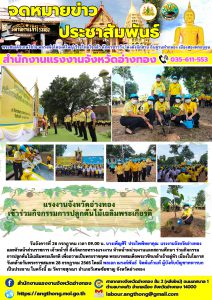 แรงงานจังหวัดอ่างทอง เข้าร่วมกิจกรรมการปลูกต้นไม้เฉลิมพระเกียรติ